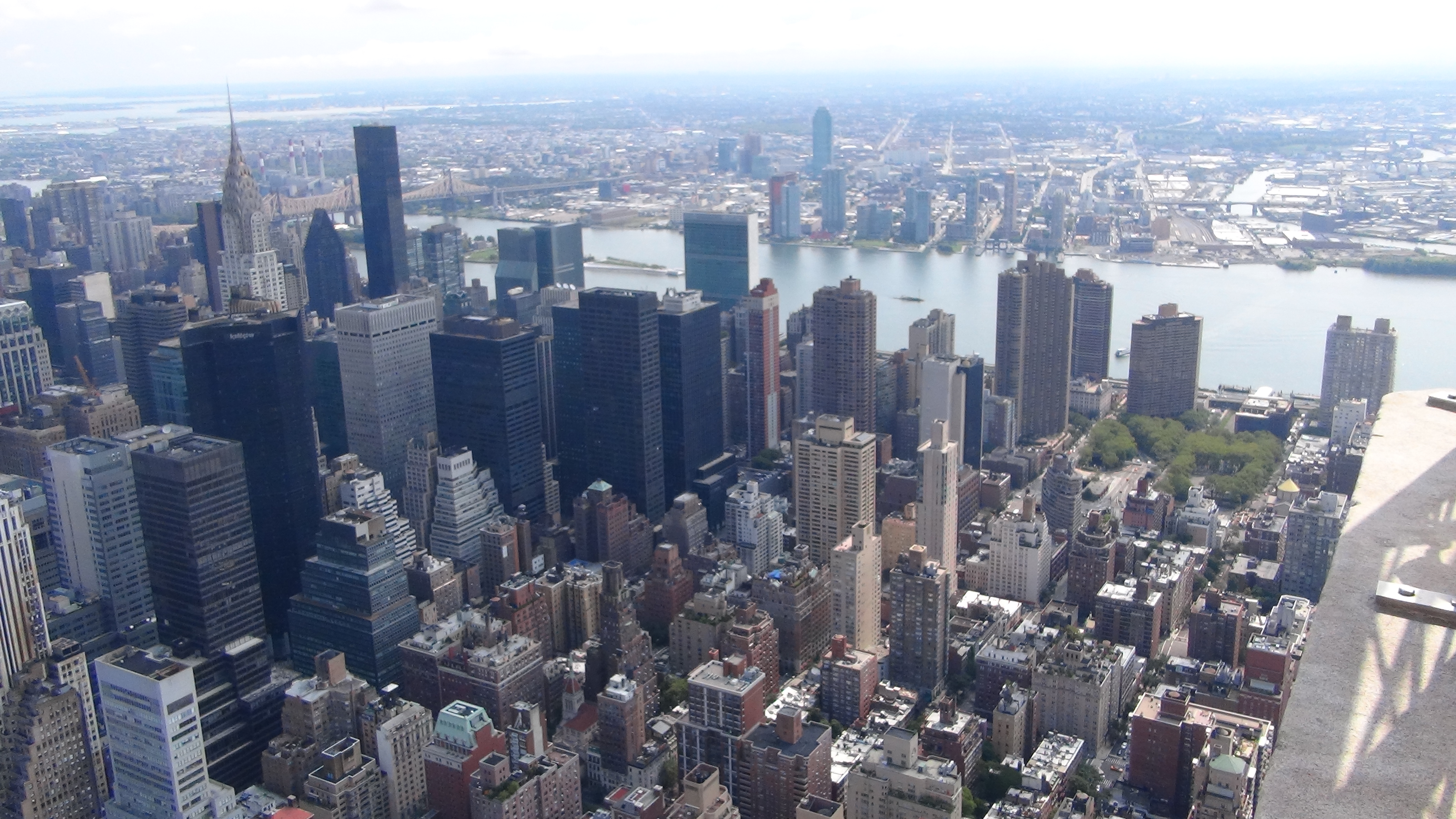 Le soleil est au rendez-vous au 86ème étage de la tour, et grâce à nos audio-guides (la visite est vraiment bien commentée, et comme nous le remarquions, Servane nous lance : « je crois que l’on va pouvoir devenir critique-en-audio-guide » !!!) nous découvrons Manhattan et les boroughs alentours (Brooklyn, Queens, Bronx, Staten Island), les 5 arrondissements qui composent New-York City. Histoire, la petite et la grande, architecture, way of life… 1OO0 et 1 détails nous sont livrés !