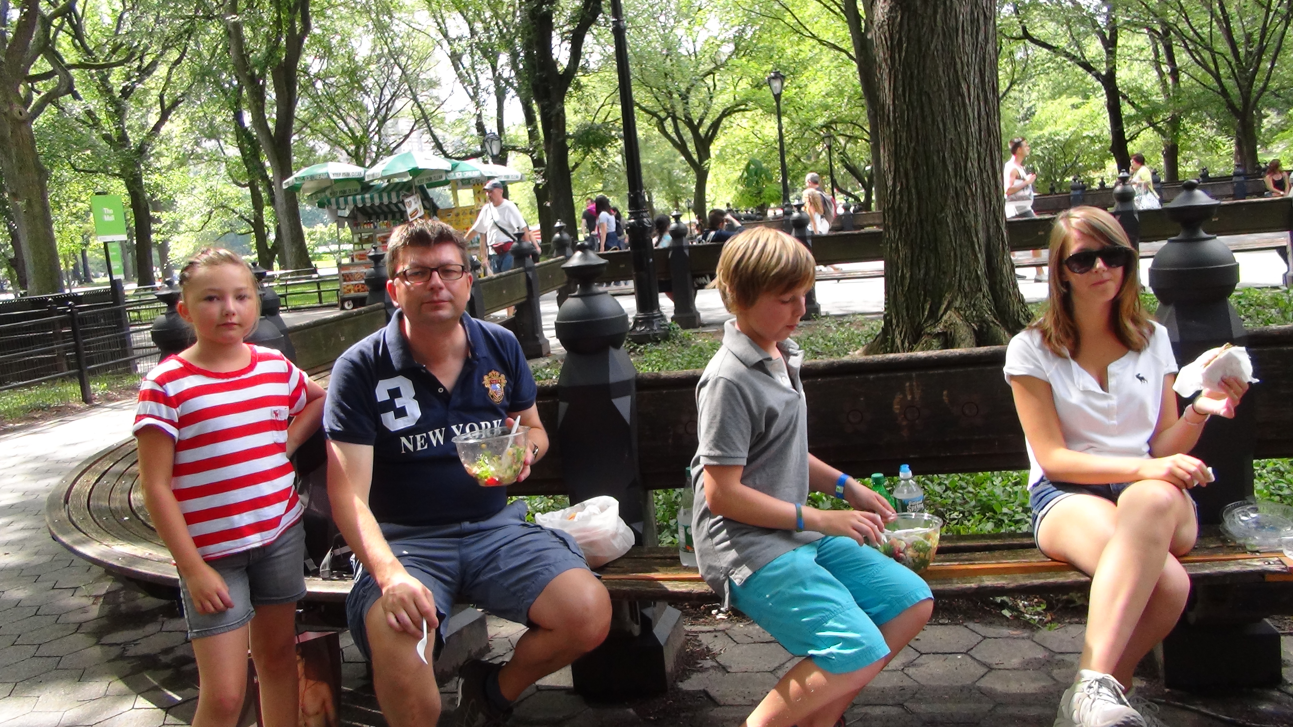 Pause-déjeuner bien méritée au coeur de Central Park, un mythe. Il est 14h30 et une agitation incroyable y règne ! Artistes (musiciens, performers, portraitistes…), sportifs, familles en ballade, calèche promène-touristes, pigeons et bien sûr les célèbres écureuils !!…