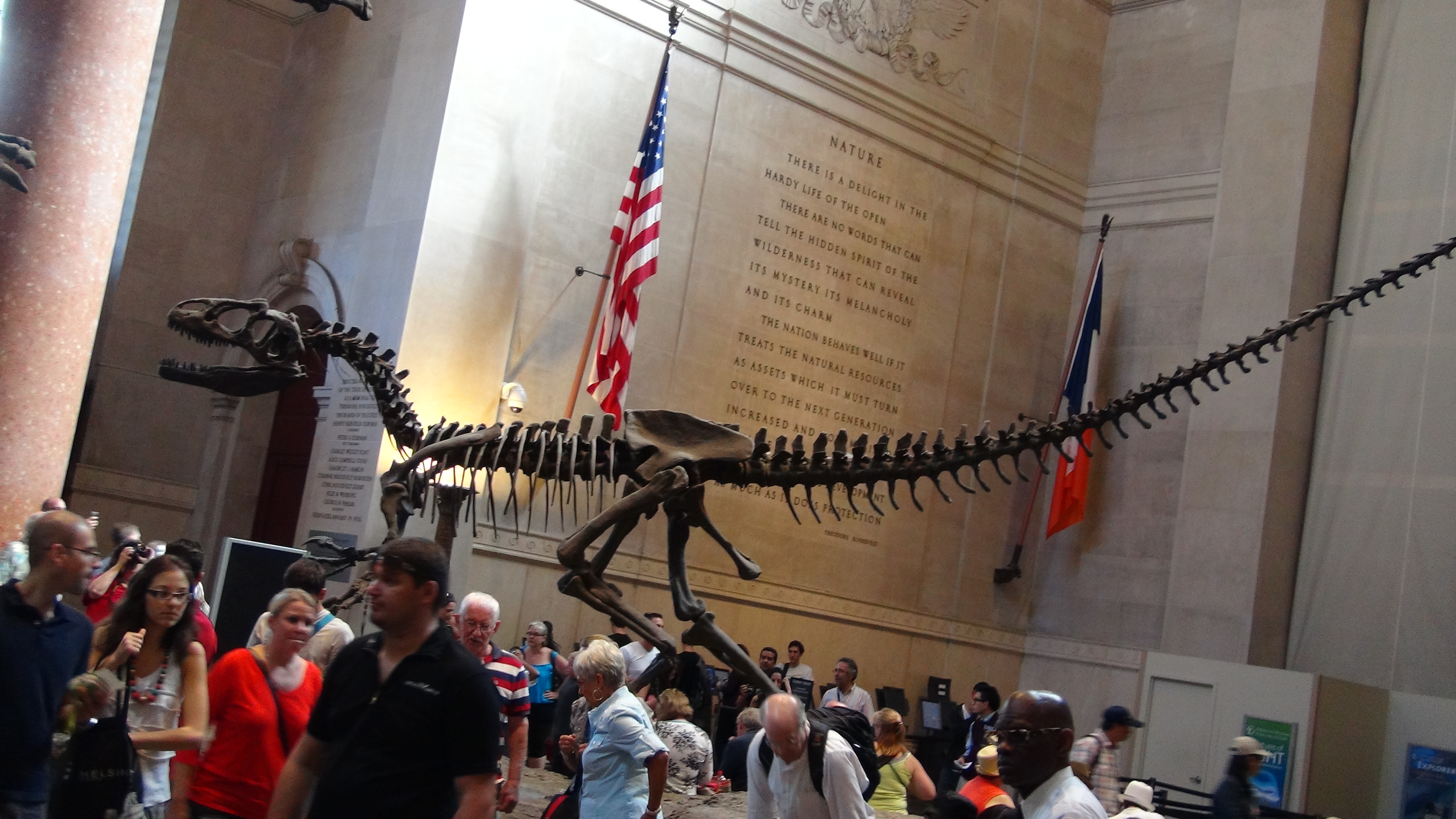 Nous traversons le parc pour trouver le » American Museum of Natural History » (musée d’histoire naturelle). Il possède une collection de plus de 32 millions de pièces réparties dans les 45 salles d’expositions permanentes. Mammifères de tous les continents, insectes les plus variés, oiseaux du monde entier, le Musée aborde tous les thèmes que ce soit la vie marine ou terrestre, l’évolution de la terre et des espèces animales ou l’astronomie. Pour tout vous dire, nous n’avons pas tout vu : les hanches nous rentraient dans les côtes, Servane et Stéph avaient essayé de soulager leurs extrémités en échangeant leurs chaussures… Le repos s’imposait. Soirée au calme donc, menu sushi et dessert préparé par Arthur, un régal.