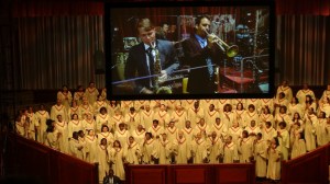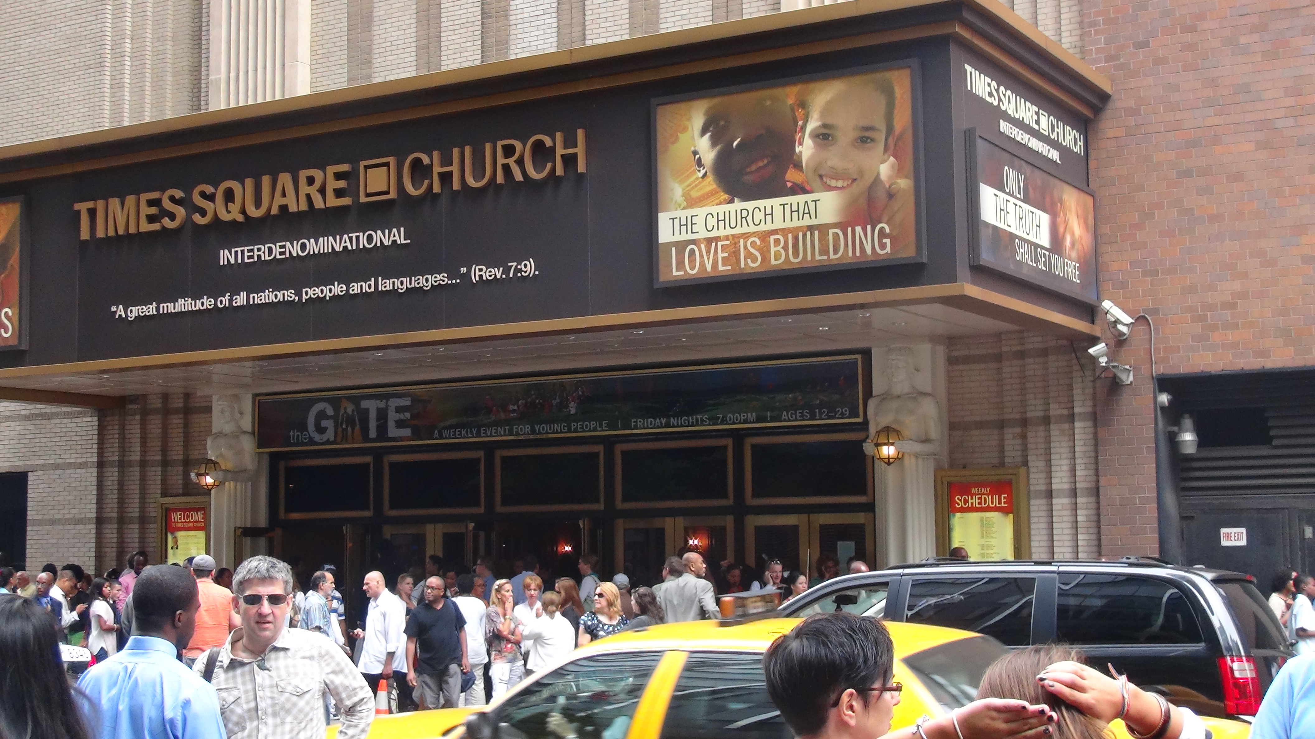 Pour ce dimanche matin, pas de grasse matinée au programme mais un départ à 9h direction Times Square… Il y a là, au milieu des immeubles et des enseignes, une église interconfessionnelle qui accueille les touristes, comme nous… Et quel accueil : traduction en direct, placement personnalisé… pour 2 heures de célébration. Alors oui, le prêche était un peu long mais il y a une telle ferveur dans la salle (ah, la salle, elle ressemble plus à un théâtre qu’à une église !!) que ça fait passer le monologue ! Maëlle en a profité pour prolonger sa nuit et les grands guettaient l’heure de la sortie, avouons-le.
