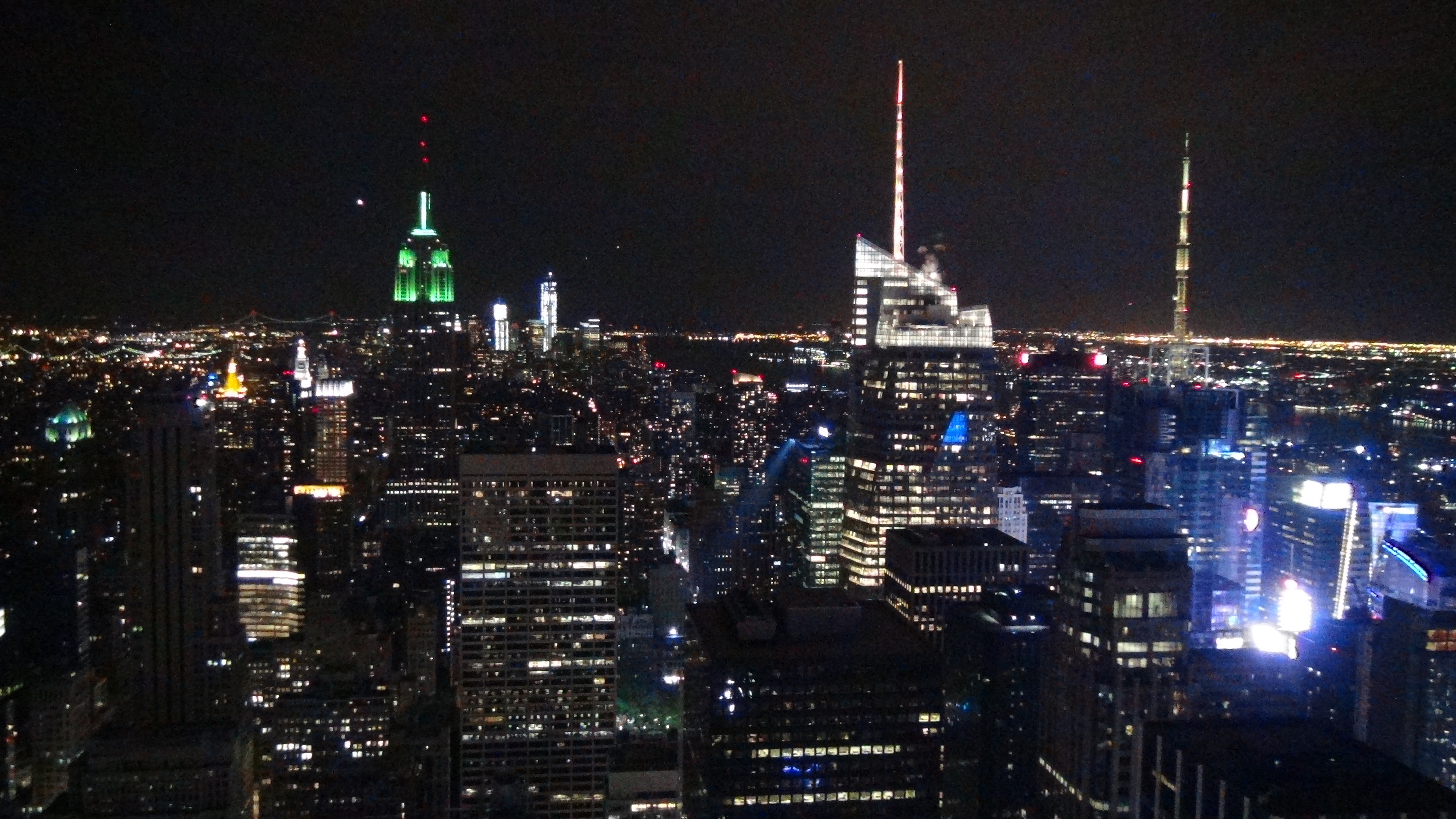 Retour à l’appart’ en fin d’après-midi pour les uns et les autres, et après un délicieux dîner préparé en équipe, nous partons direction le Rockfeller Center. Notre mission ? Monter au 69ème étage pour découvrir une autre vue de New York, de nuit celle-ci, avec, dans notre panorama, l’Empire State Building illuminé en vert. C’est beau une ville la nuit !