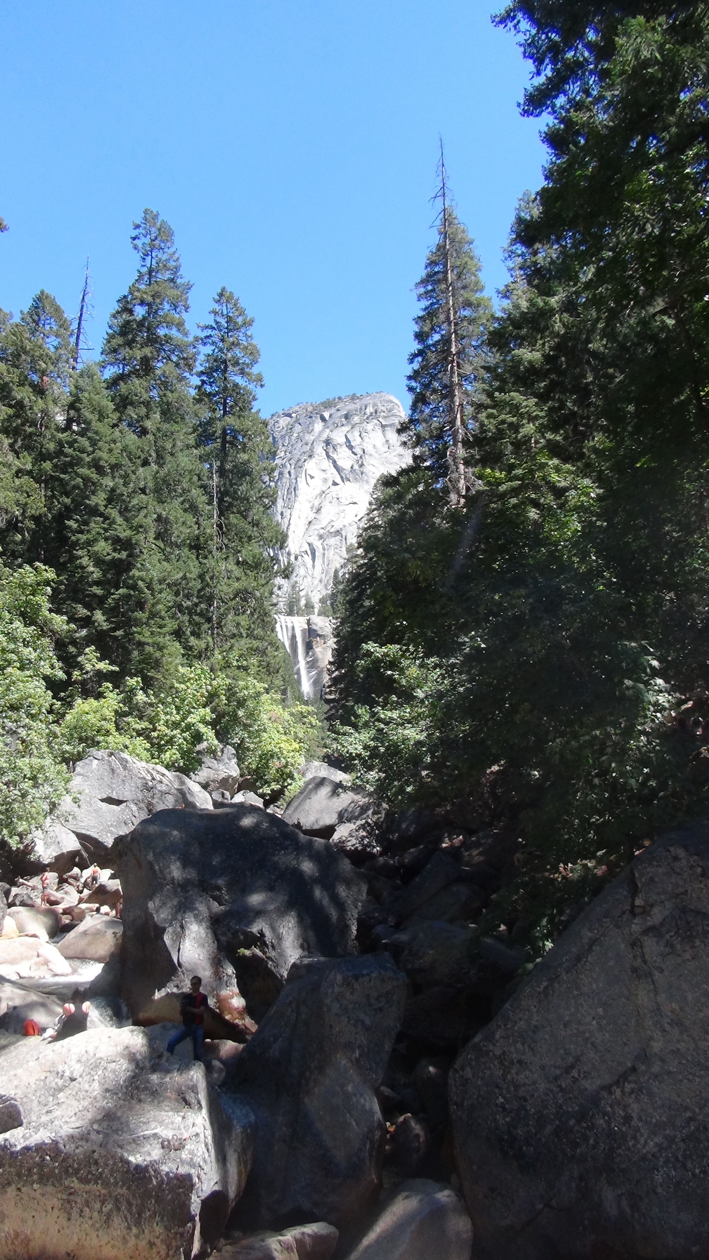 Nous choisissons de monter la « Vernal Fall », chutes que nous atteignons après une ballade de près de 3kms, et quelle ascension ! ! Des roches, des bassins d’eau cristalline, la forêt et nous, insignifiants, au cœur de cette nature remarquable. Nous en avons un peu bavé mais admirez plutôt : >> ici ><<