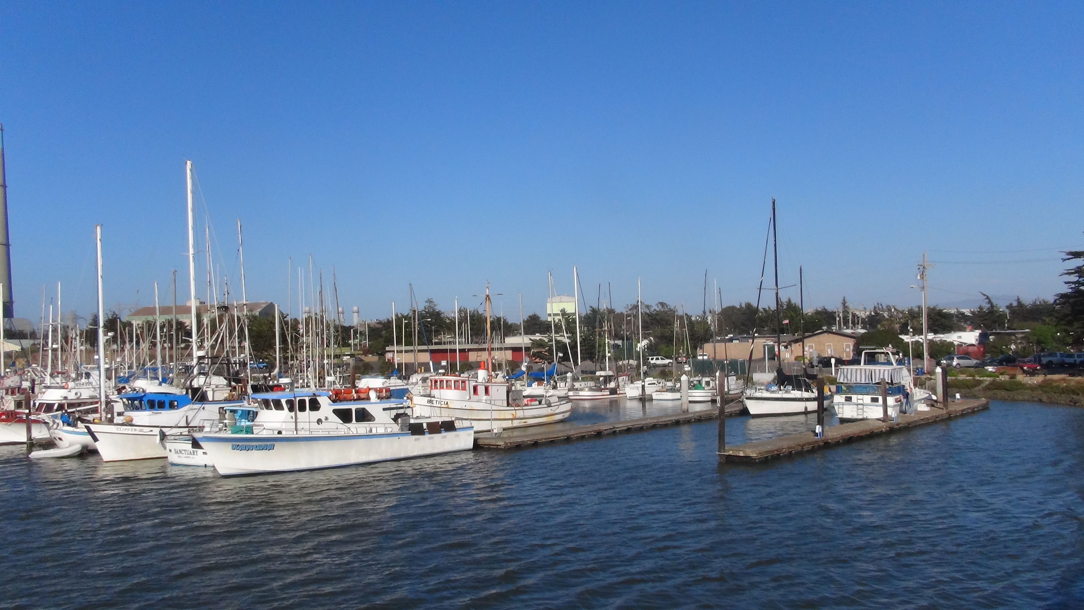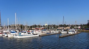 Plus nous approchons de la mer plus la température baisse (de plus de 100°f -38°C dans les terres à moins de 60°f- 15°C en soirée !!), et c’est le moment où les filles couinent pendant qu’Alex revit! ! Le campground, insolite, ce situe au cœur d’une marina, bateaux de pêche ou de tourisme, plage sur le Pacifique, restaurants de poisson, et d’incroyables magasins d’antiquités.