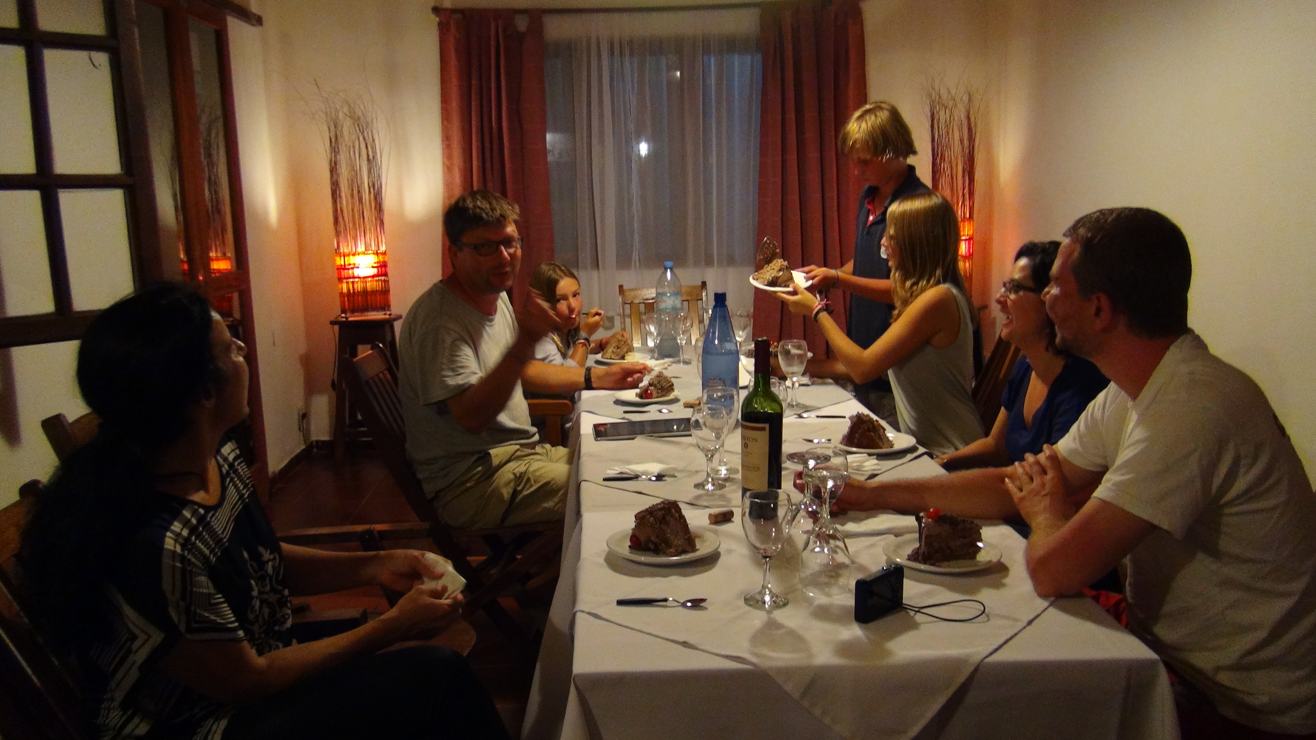 Avant d’arrivé au restaurant, nous avons pris un taxis : 8 dans une Opel Mériva ! Pas de problème ! Arthur et Maëlle seront devant avec Alex et le chauffeur… Pour réussir à mobiliser un taxis, il faut négocier la course car ils refusent très souvent de brancher le compteur légal. Les forfaits sont eux 3 à 4 fois plus chers que le compteur !