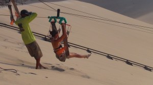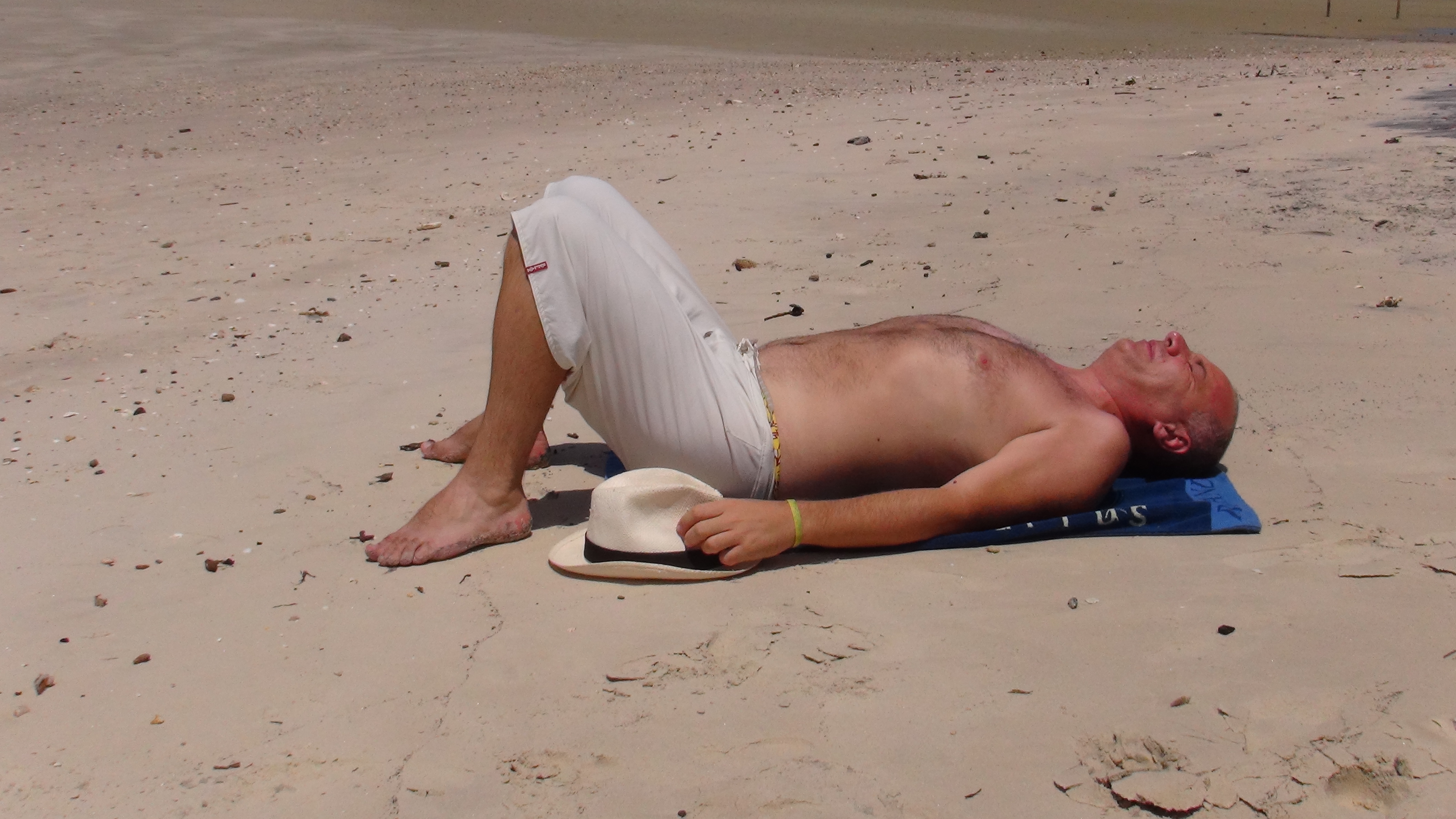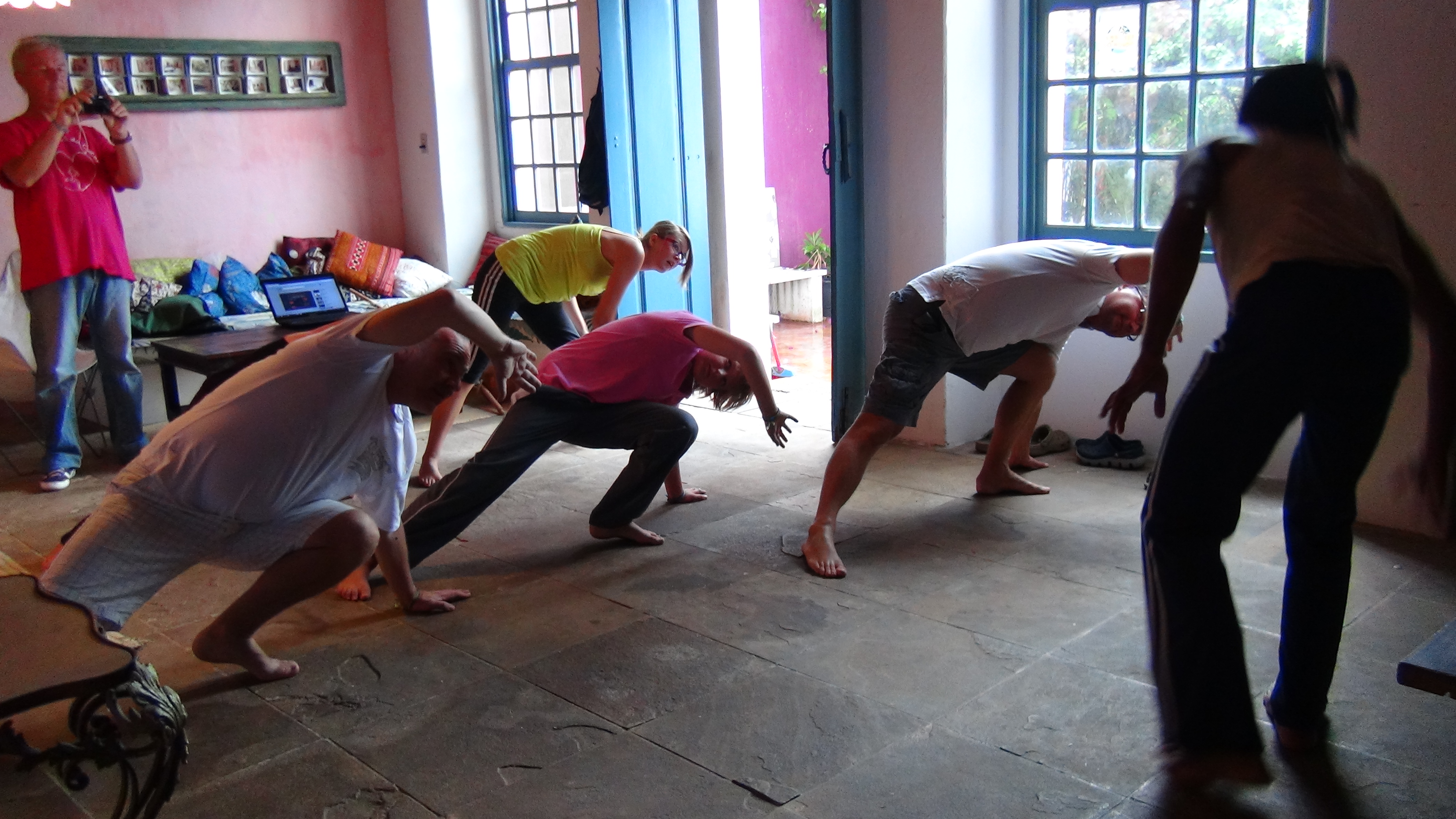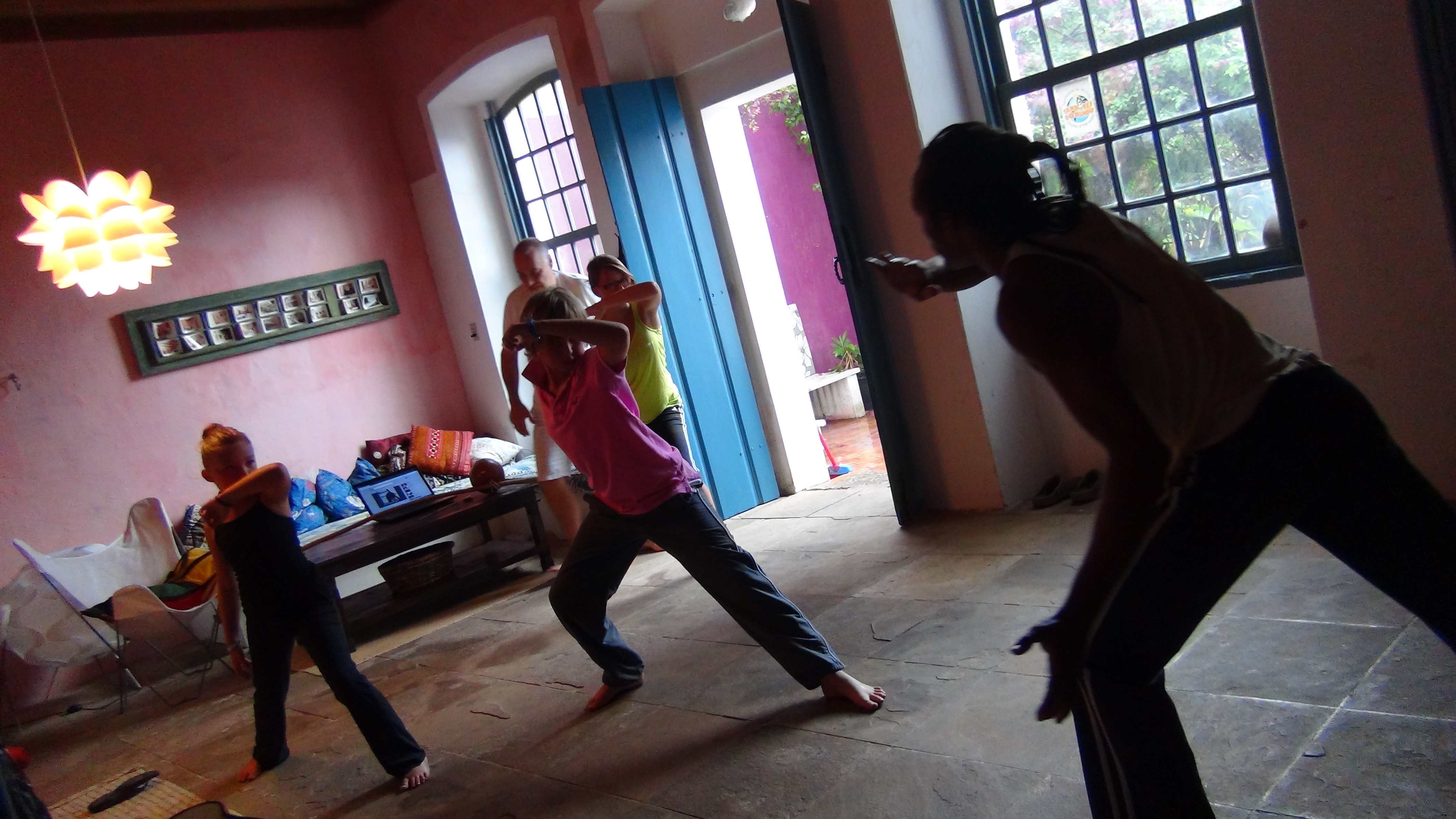 Mercredi. Journée des enfants ? Non, trop convenu !…Déjà référencée sous la thématique « gage N°10 », cette rencontre avec José Mar, ami de Vincent et adepte de capoeira restera pour nous tous mémorable. Cueillis au petit déj’, nous faisons connaissance avant de nous essayer à l’art du Ginga, le pas de base, enchaînant les acrobaties, les esquives… Enfin, on aurait bien aimé, mais pas de miracle, seul l’entrainement compte ! Et pour José Mar, c’est en moyenne 3 heures par jour depuis 15 ans !!