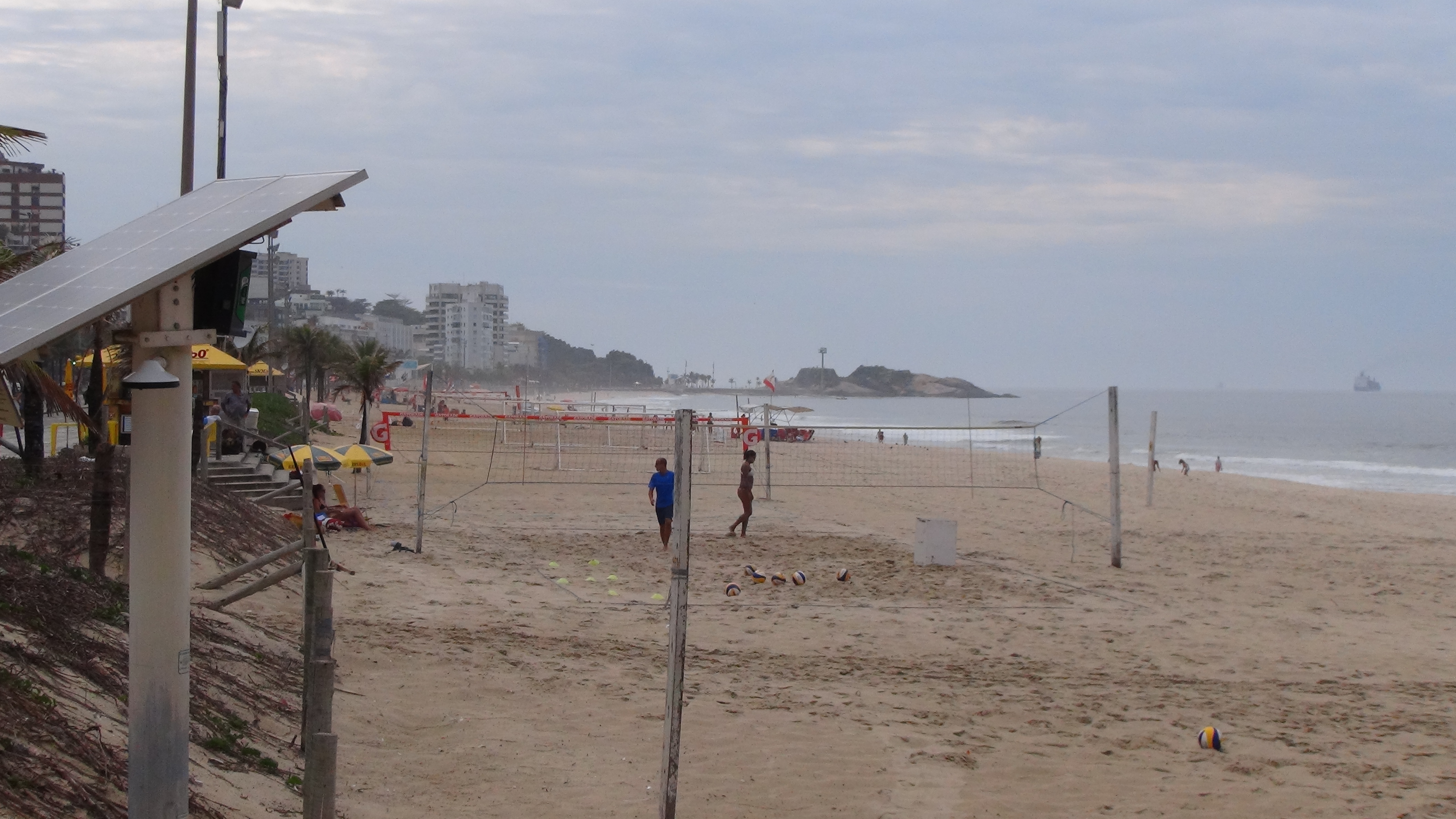 Avant que le soleil ne se couche, nous filons à la plage en contre-bas de la maison, accessible par les jardins du musée d’art contemporain, adossée à un petit port de plaisance. Joli et safe, les vigiles sont partout, la favela la plus proche est à quelques dizaines de mètres seulement. Contraste.