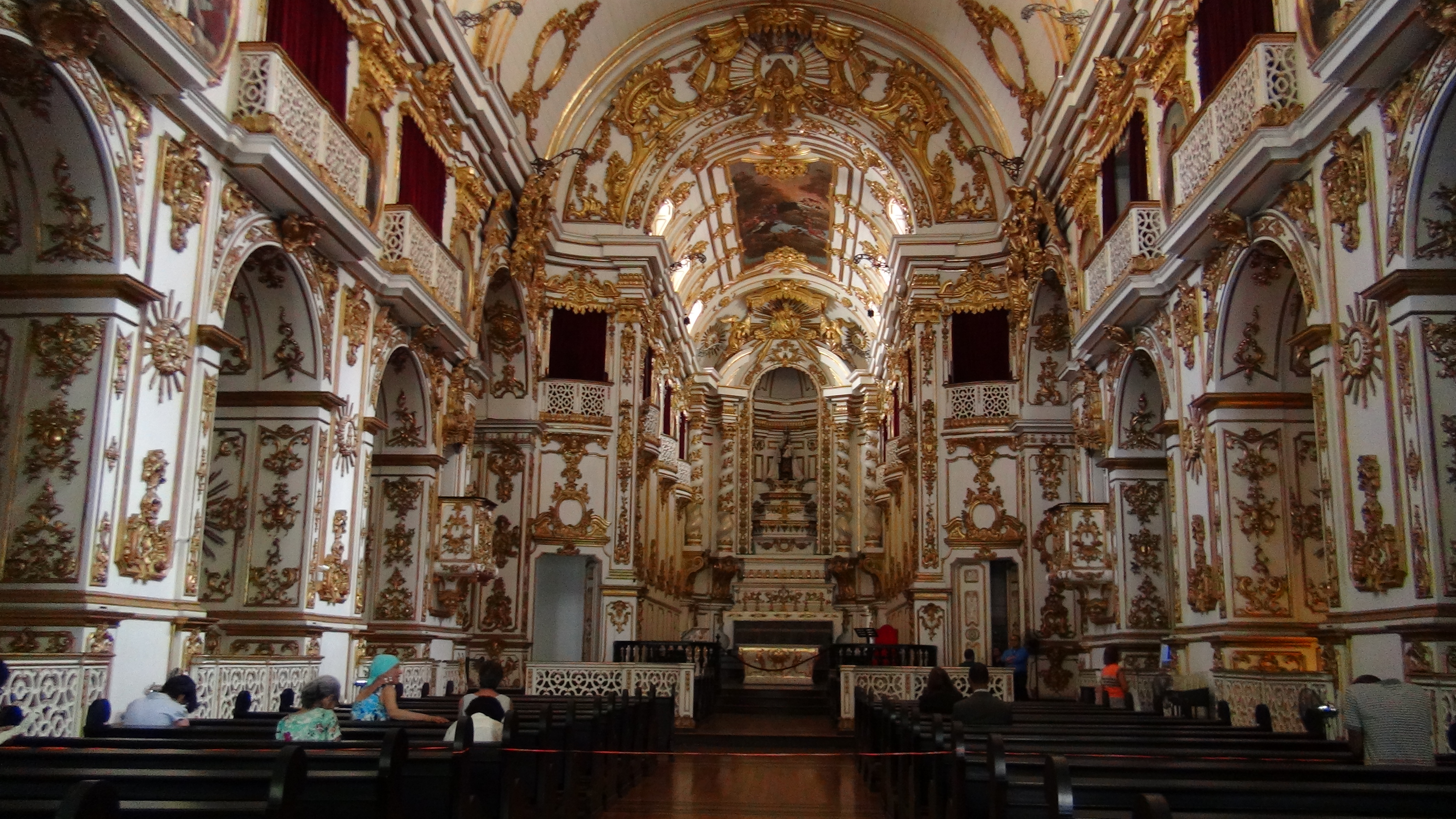 Nous visitons l’église Sao Francisco, de style « colonial », construite de 1708 à 1713 et couverte de sculptures dorées.