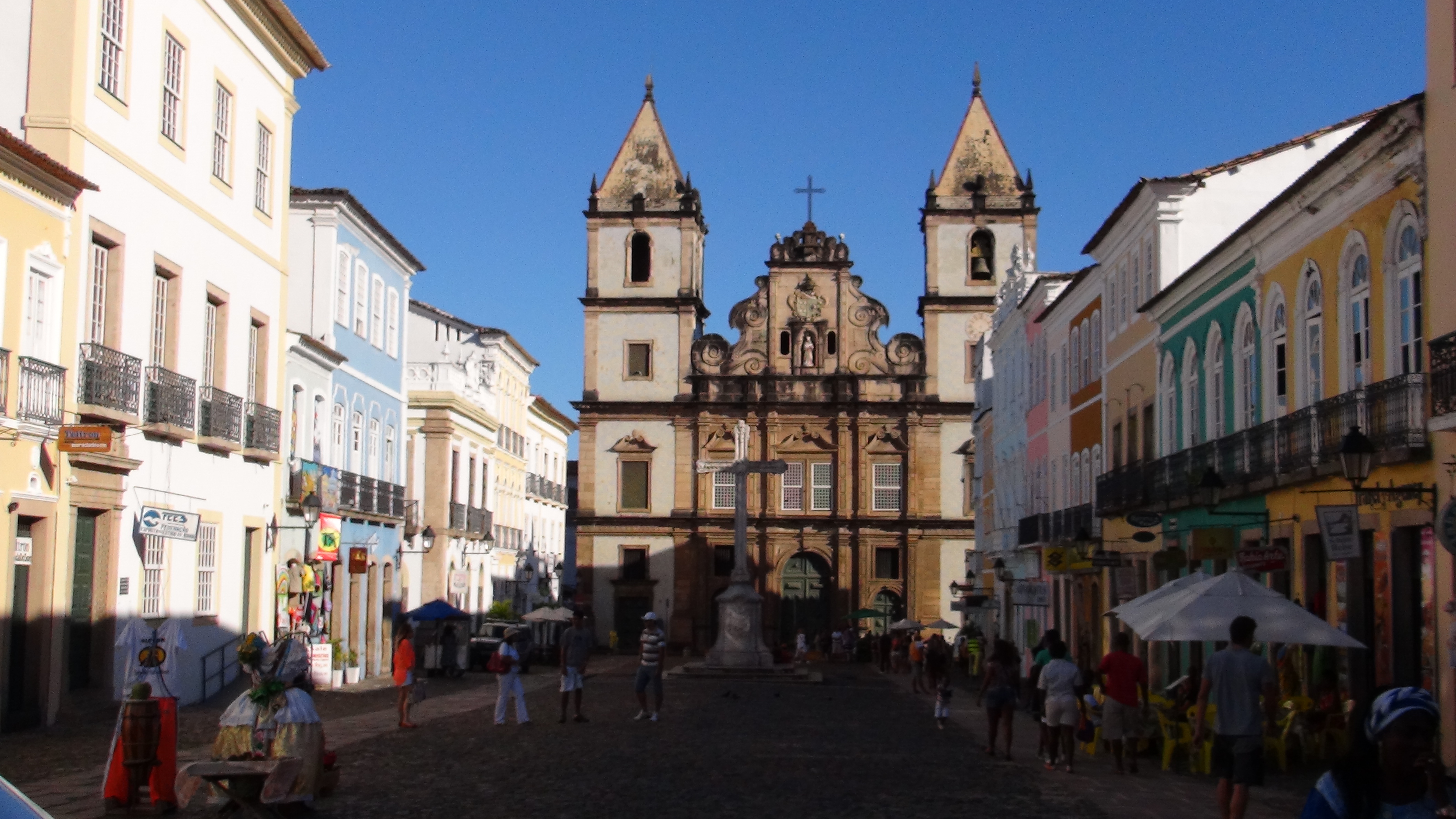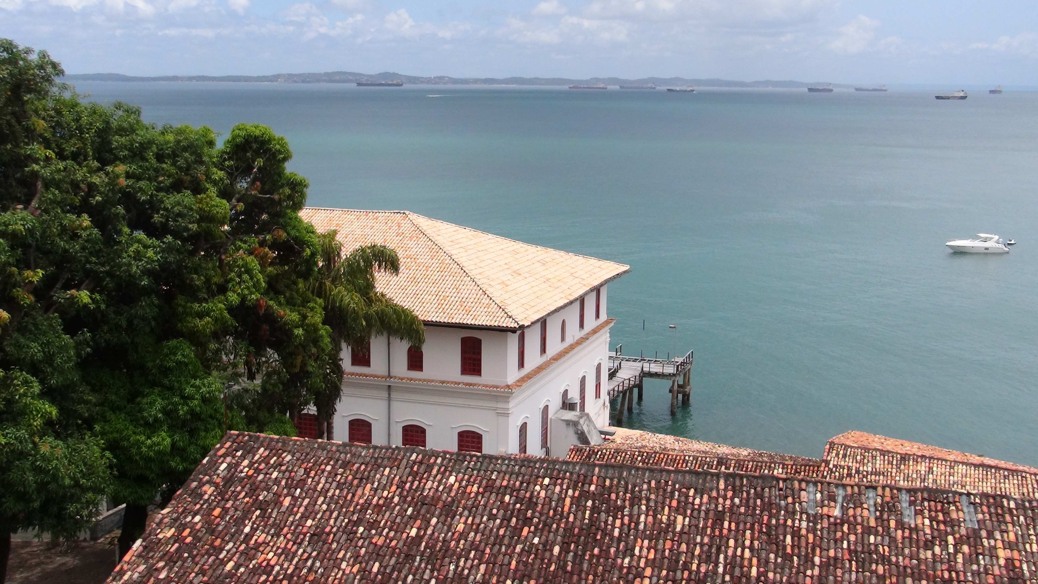 Depuis la place Thomé de Souza (premier Gouverneur-Général du Brésil en 1549 ayant reçu pour mission de construire une ville fortifiée) nous contemplons la Ville Basse où se trouvent la cathédrale (la première au Brésil) et les immeubles administratifs laquelle est reliée à la Ville Haute par l’ascenseur Lascerda. La vue sur la baie est superbe.