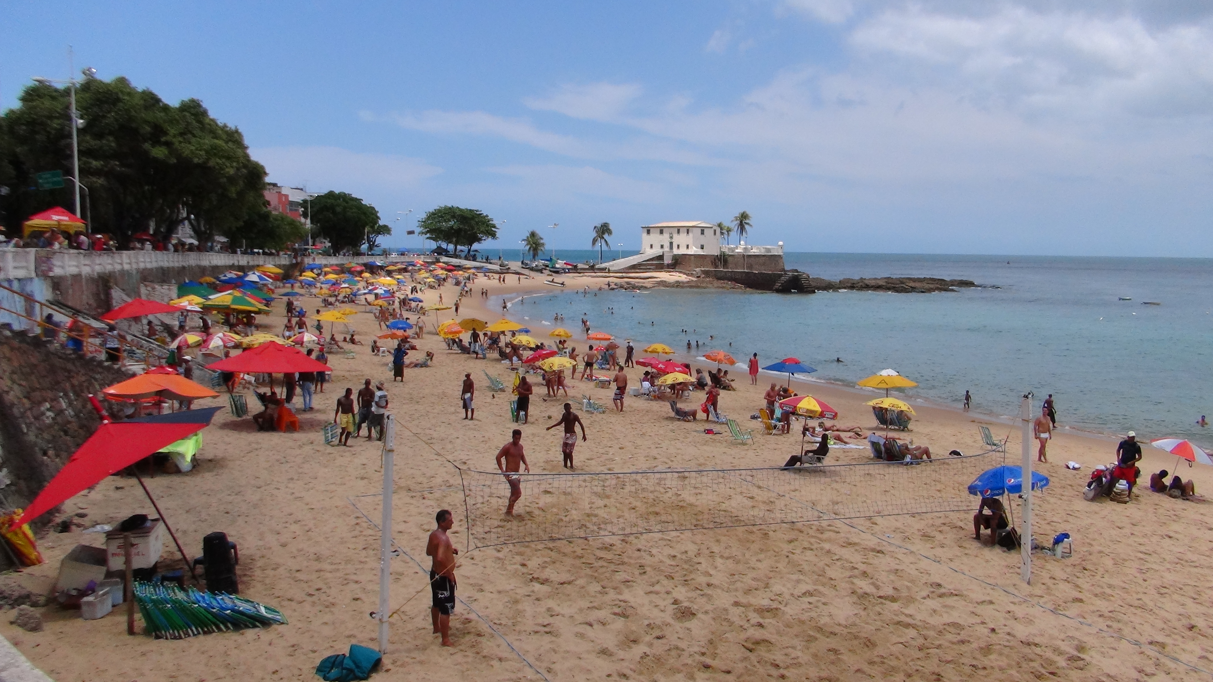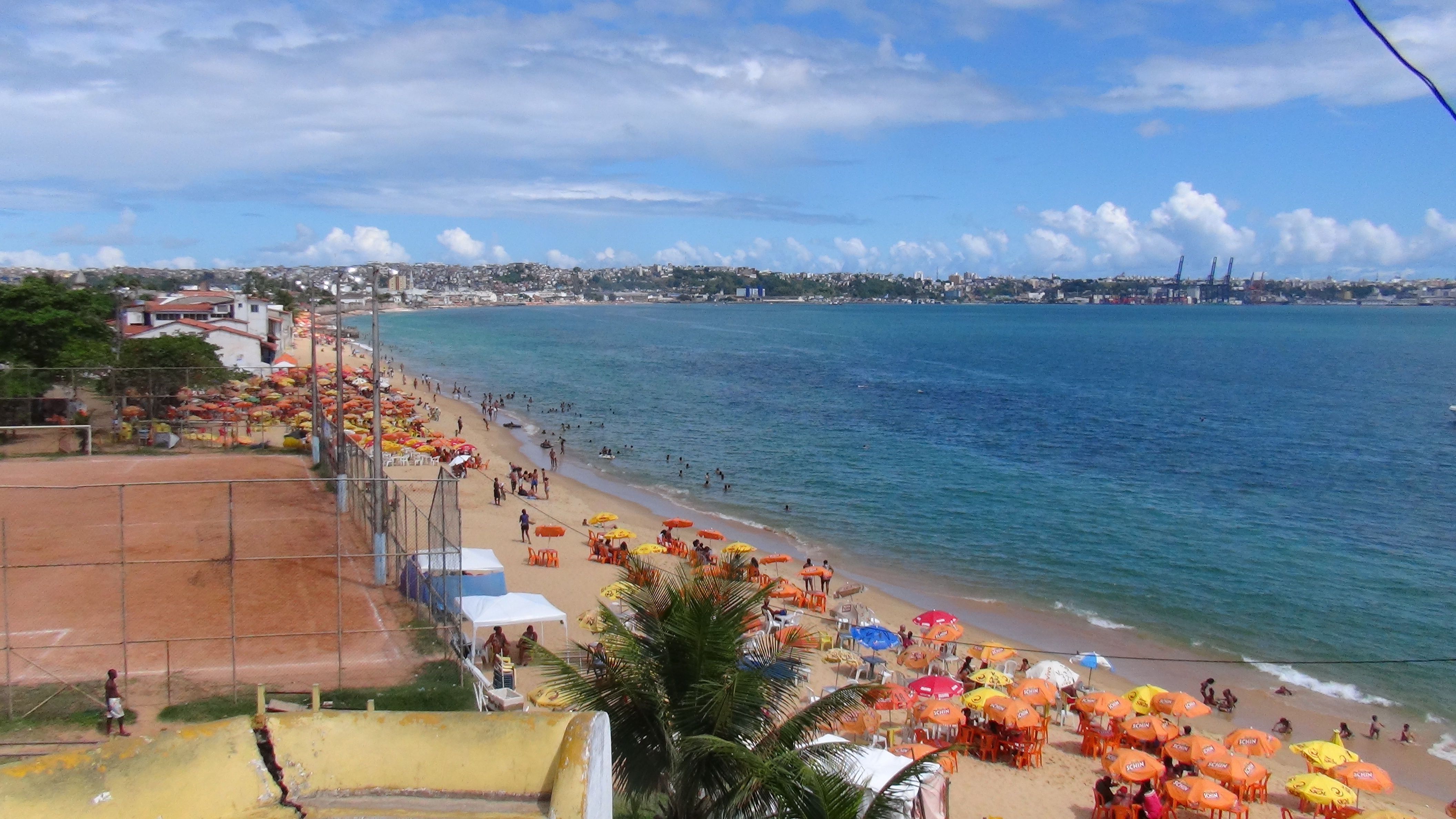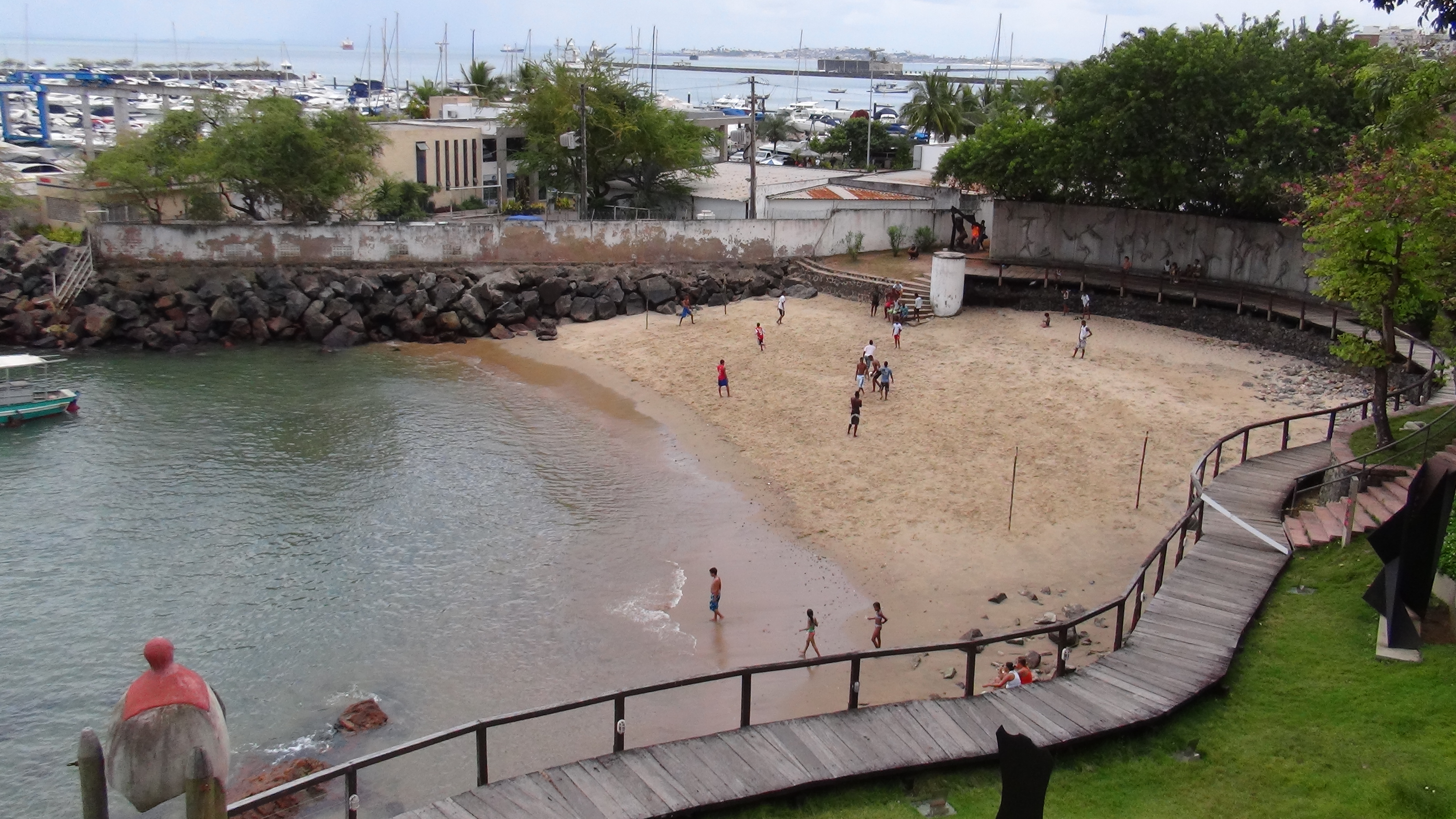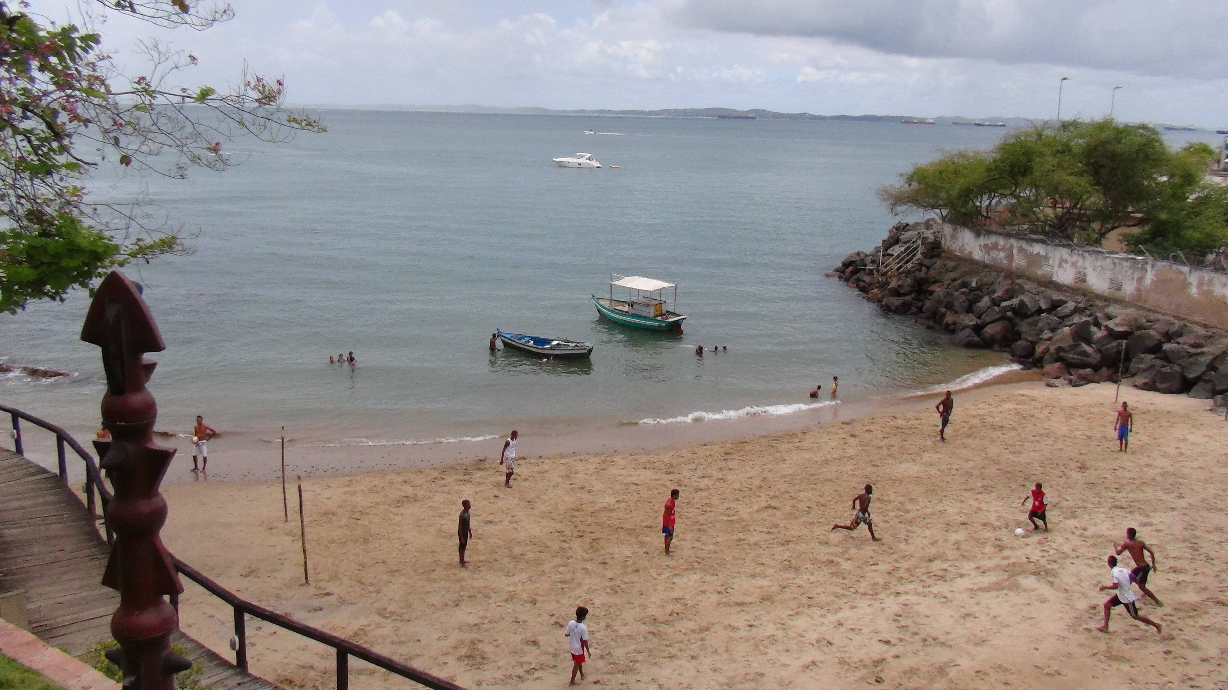 Nous traversons une nouvelle fois la ville jusqu’au quartier résidentiel chic de Barra, où nous gagnons la plage. C’est ici que notre prof’ de capoeira travaille, louant des transats, parasols… Deux heures de détente, de soleil… et une très joyeuse partie de balle dans l’eau avec José Mar.