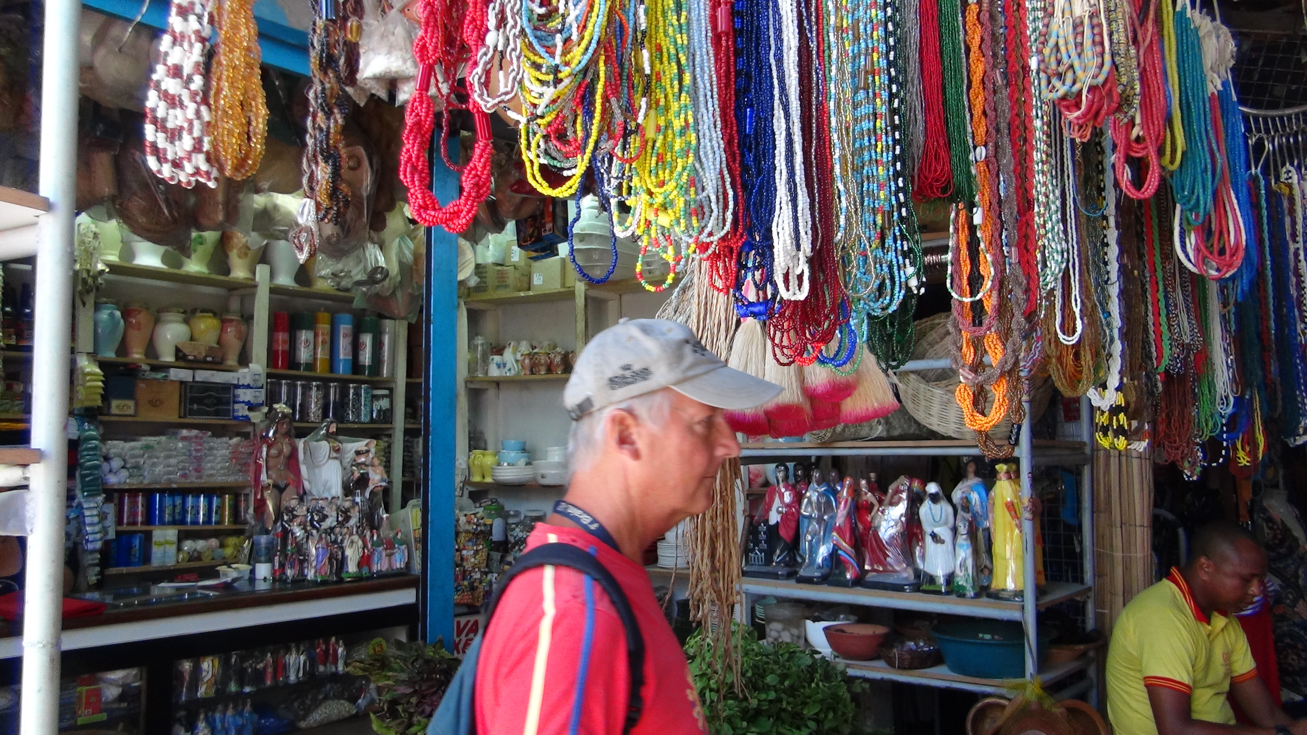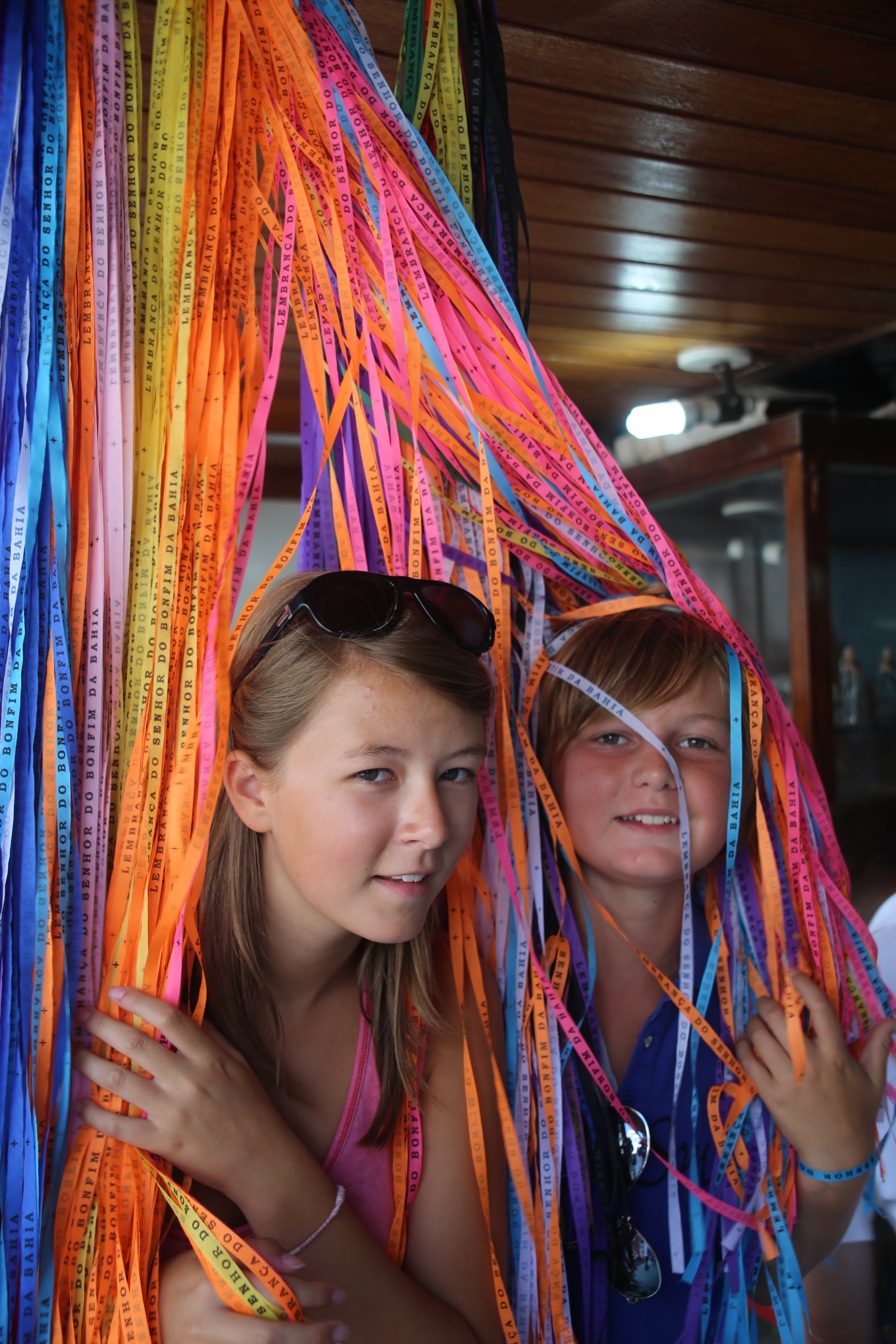 Lundi, nous traversons la ville pour nous rendre à L’Église Nosso Senhor de Bonfim (« Notre Seigneur de bonne fin »), église catholique située sur la Sagrada Colina (« Colline sacrée »). C’est là que sont distribués les célèbres rubans de Bonfim, accrochés au poignet, à la cheville, à la voiture… ils portent bonheur. Autre curiosité, la salle remplie d’ex-votos : une collection d’objets en cire, argent, or, bois, etc, offerts par les fidèles pour le paiement de grâces, principalement pour des guérisons miraculeuses.