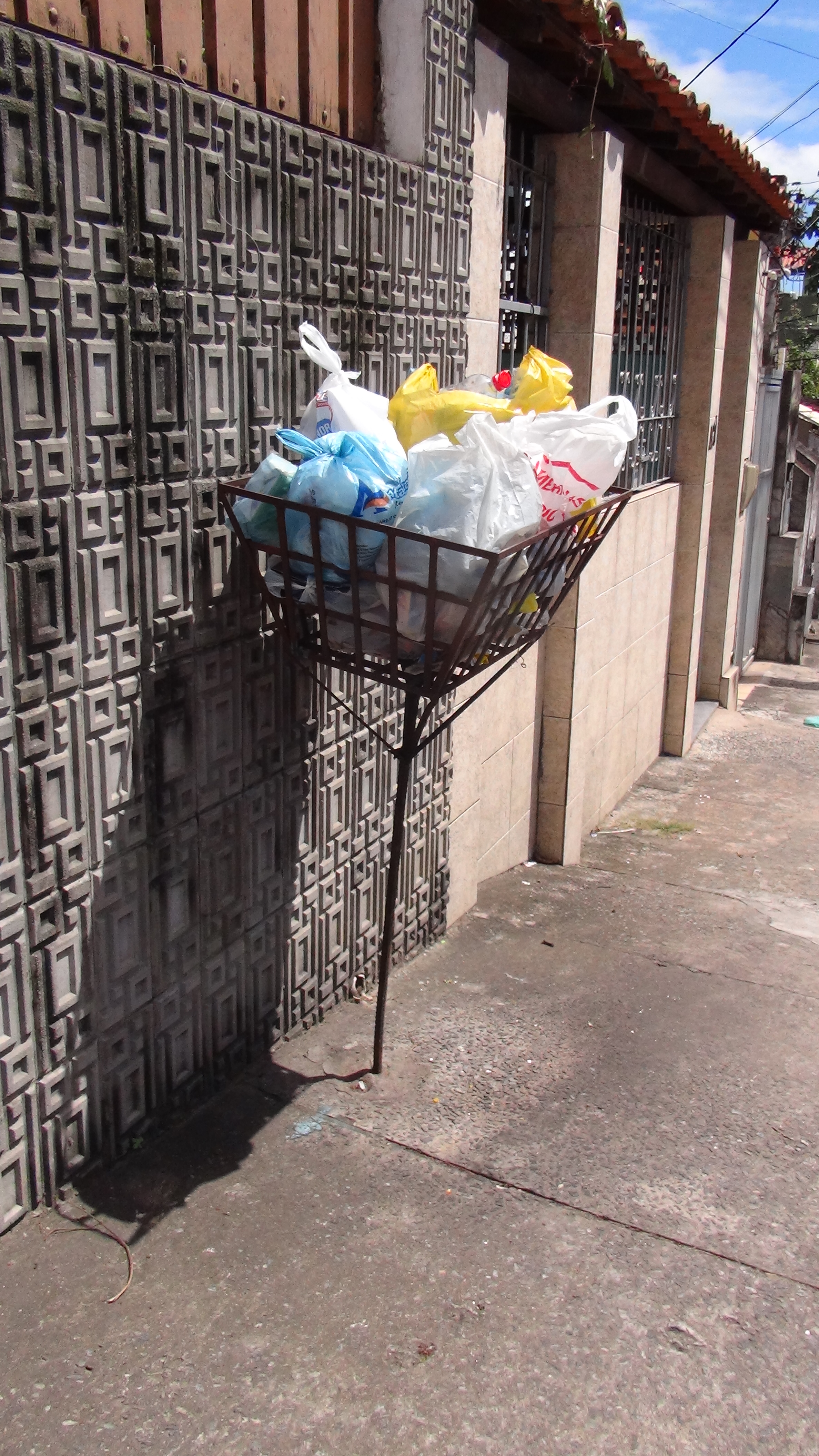 Les poubelles… voila théoriquement ce qui doit se faire…(Les bacs sont surélevés pour éviter que les chiens ne les fouillent). La réalité est malheureusement plus triste : dès que vous déposez vos sacs poubelles au coin de la rue, de pauvres gens s’en emparent, les déchirent et les renversent pour tenter d’y trouver quelques bricoles qu’il revendront (canettes en alu, bouteilles plastiques…) ou parfois de la nourriture.