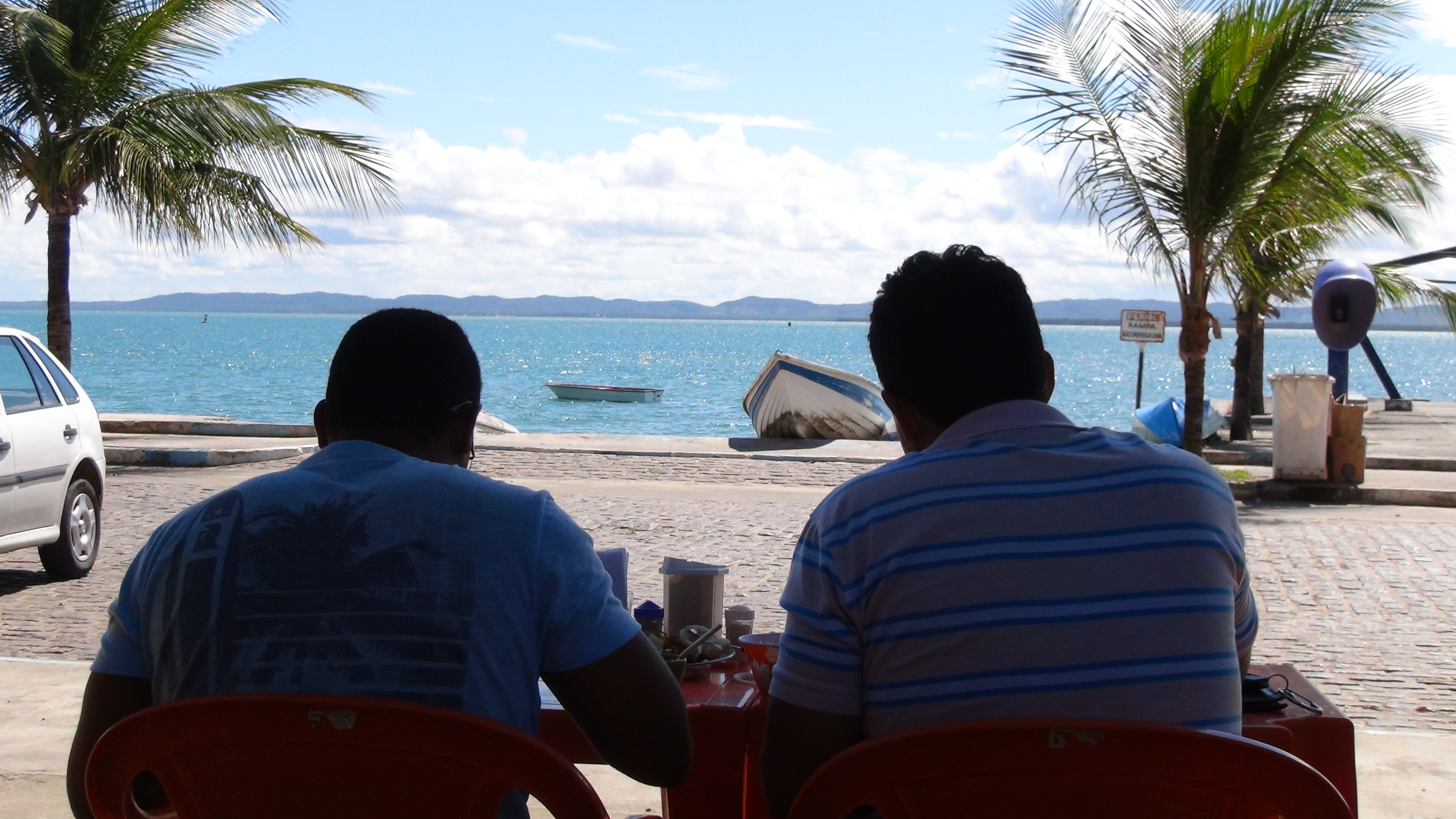 Mardi. Pour cette journée, ensoleillée à souhait, l’île d’Itaparica nous appelle. Grande et plate dans son ensemble, elle est située en face de Salvador, protégeant une partie de la vaste baie. Elle est peu exploitée commercialement et a conservé un caractère rural. Les plus belles plages de l’île se trouvent à l’est… Et c’est notre destination ! Bus, bateau, mini-bus (des combis Volkswagen hors d’âge !!) et nous arrivons, déjà conquis, sur une plage superbe.