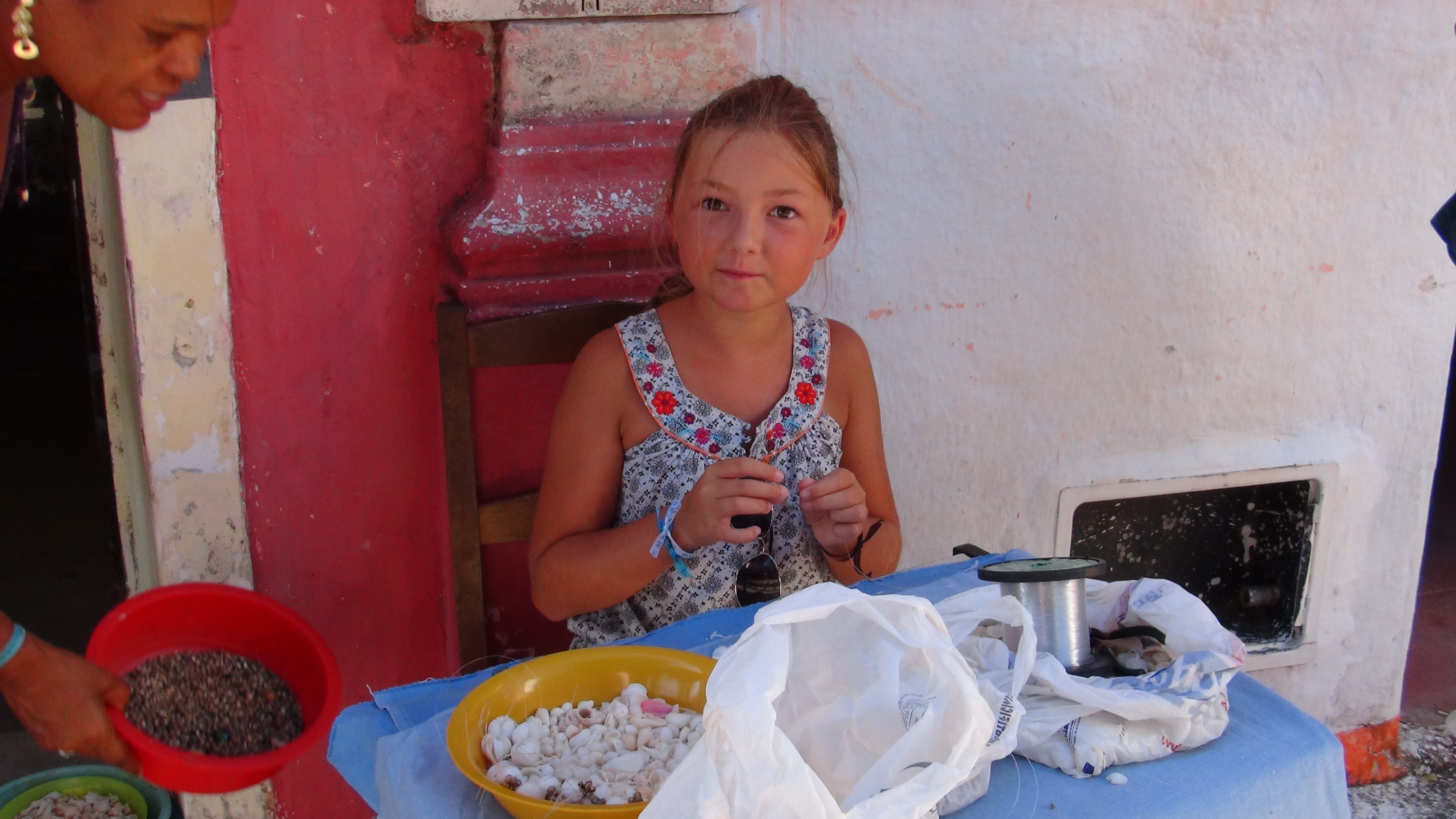 Maëlle rencontre une femme réalisant des colliers en coquillage >> ici <<