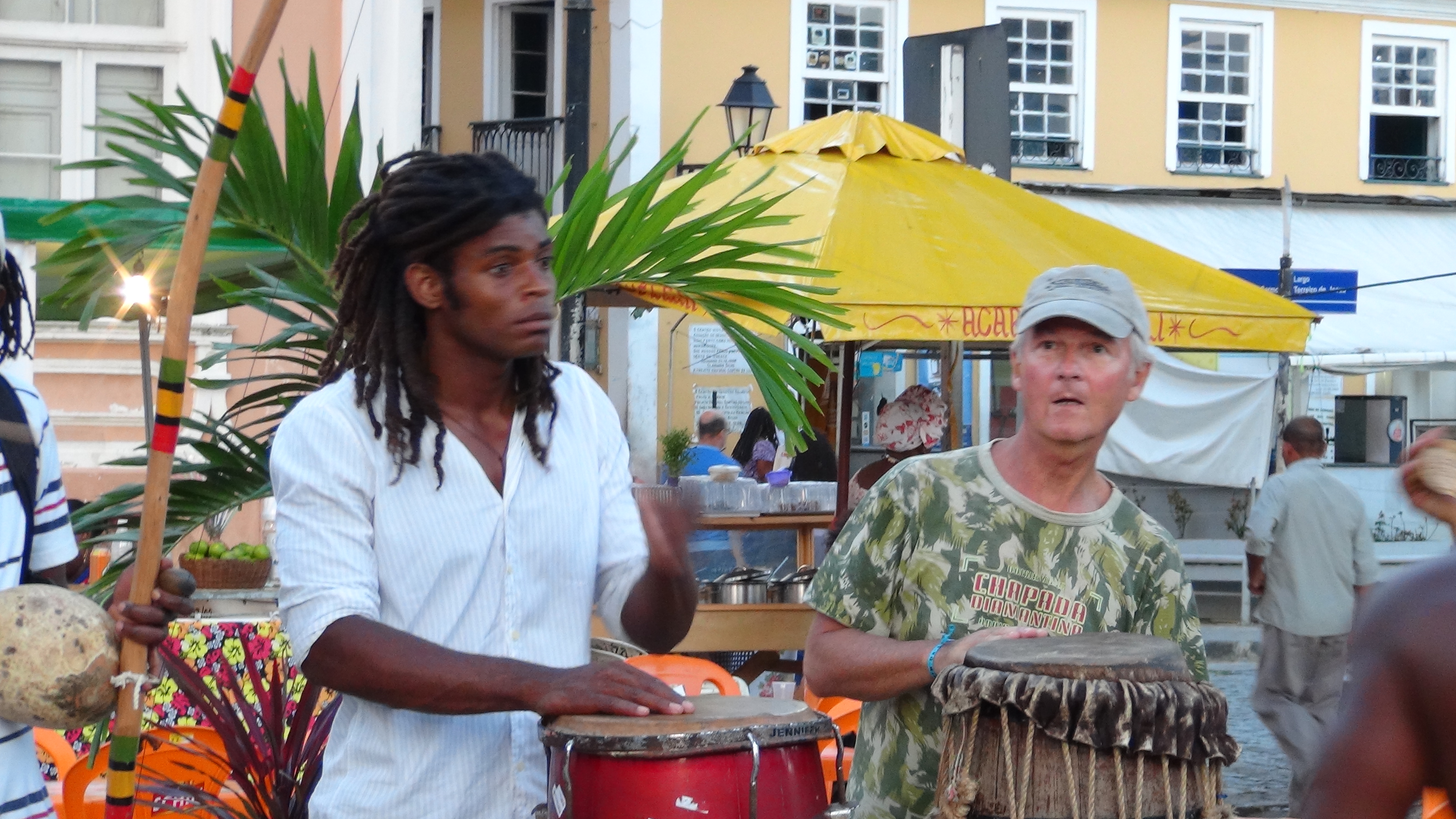 Vincent est un excellent percussionniste doublé d’un passionné du Brésil. Très vite il nous fait découvrir >> ici << puis goûter aux instrument locaux >> ici << et même à quelques pas de danse >> ici << !