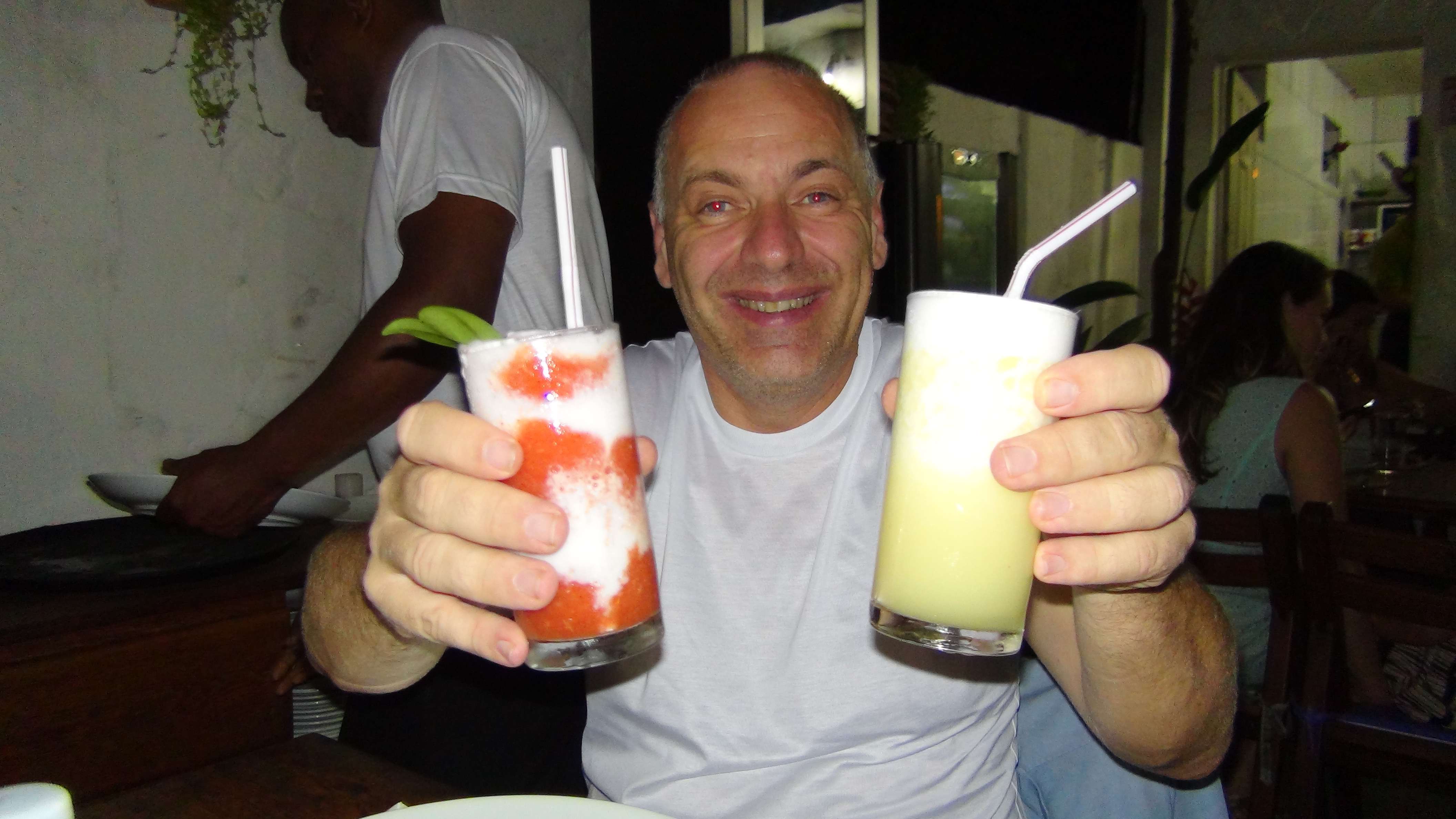 Retour à la maison en fin de journée (ici le soleil se couche vers 17.30), car comme presque tous les soirs cette semaine, la caipirinha nous appelle… Tant et si bien qu’Arthur et Maëlle sont incollables sur la théorie et la préparation !!! Et puis Rose, voisine et cuisinière émérite, nous régale de ses petits plats livrés prêts à déguster à 20 h, quel bonheur de savourer ses spécialités : Feijoada, un plat à base de haricot, Moqueca de poisson au lait de coco, oignons, poivrons…