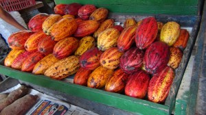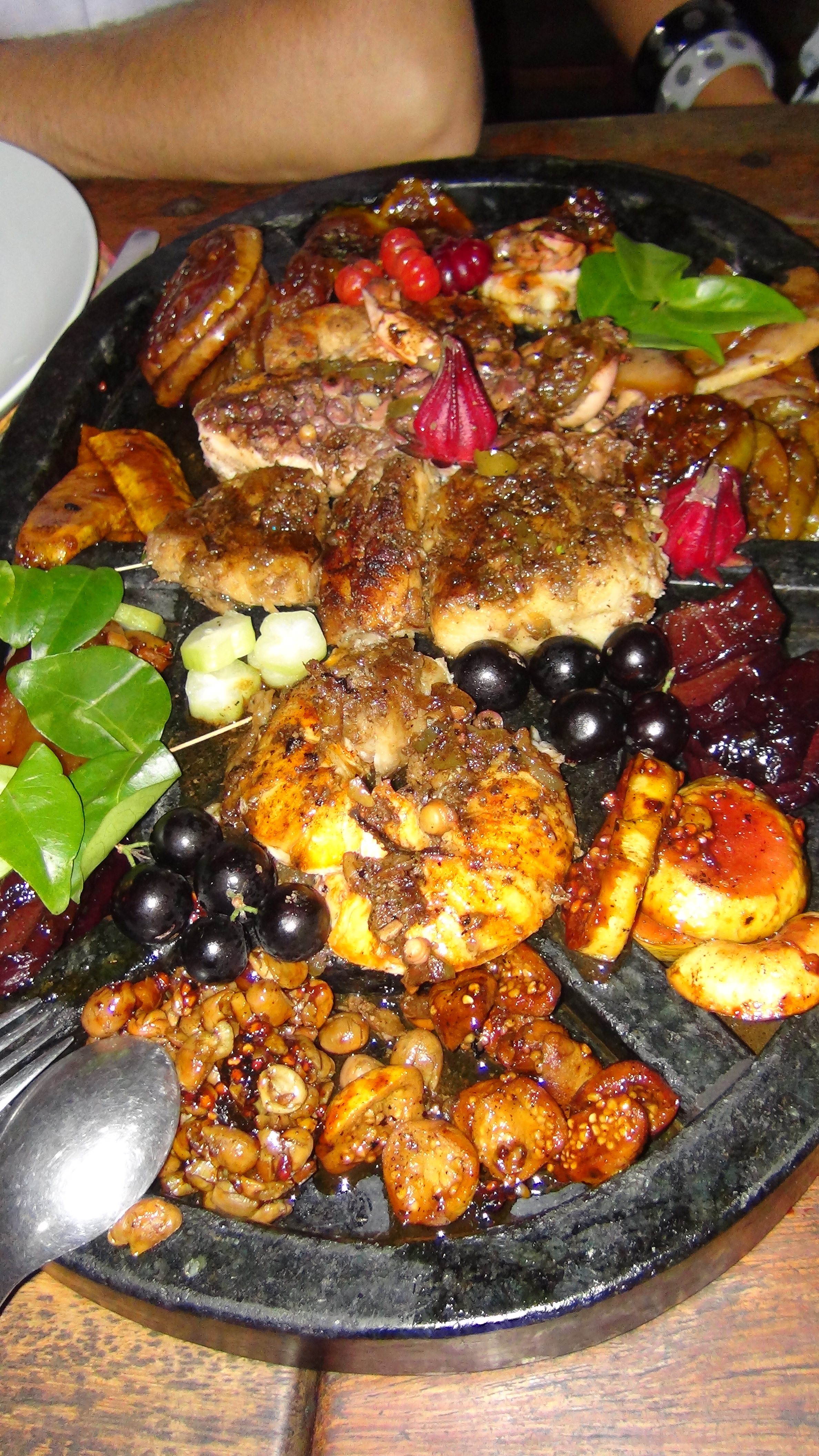 Nous sommes dans le restaurant et ils nous servent un drôle de fruit qui pousse sur le tronc des arbres…