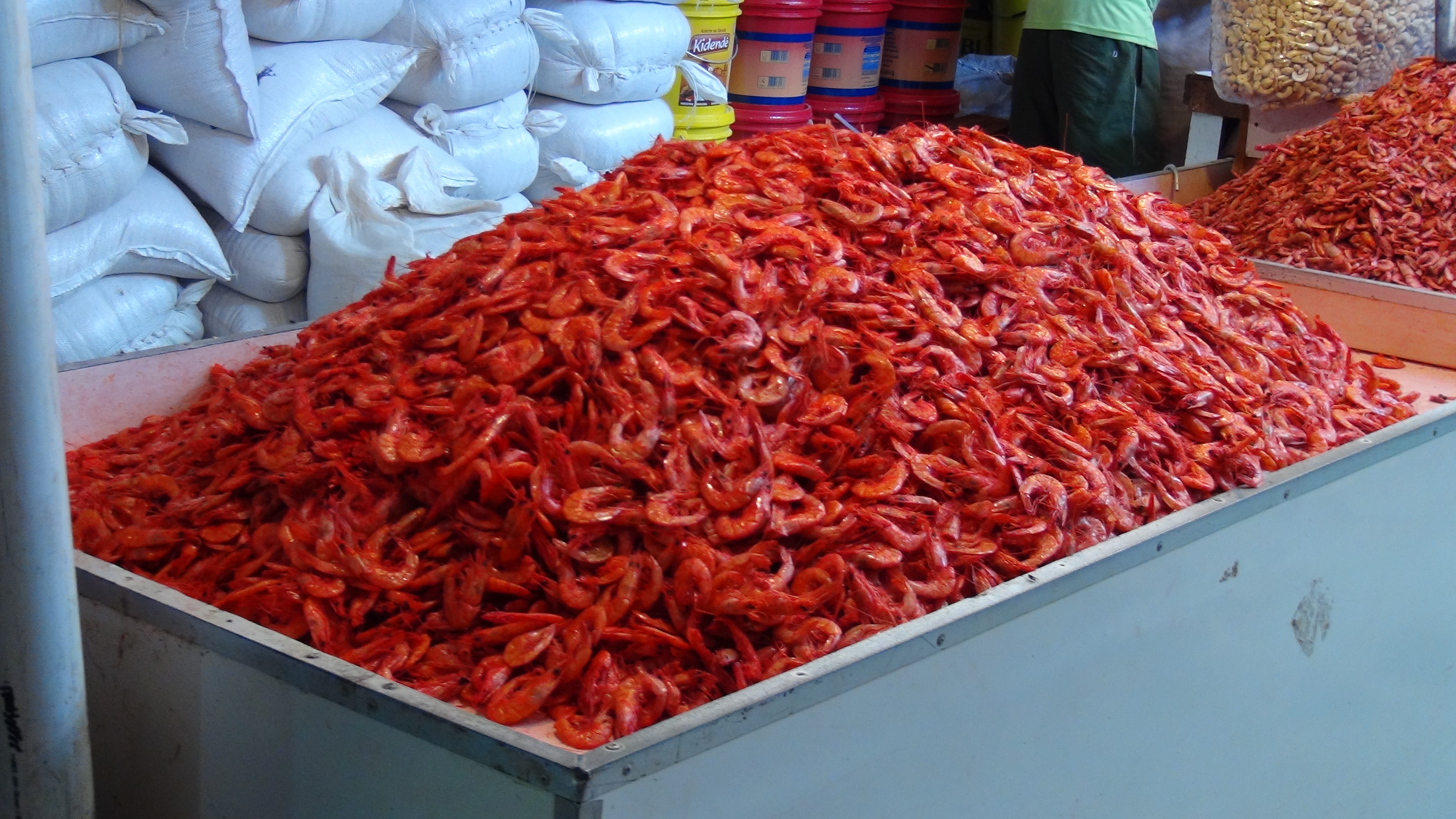Les crevettes sont partout. Elles sont séchées pour se conserver et agrémentent les plats.