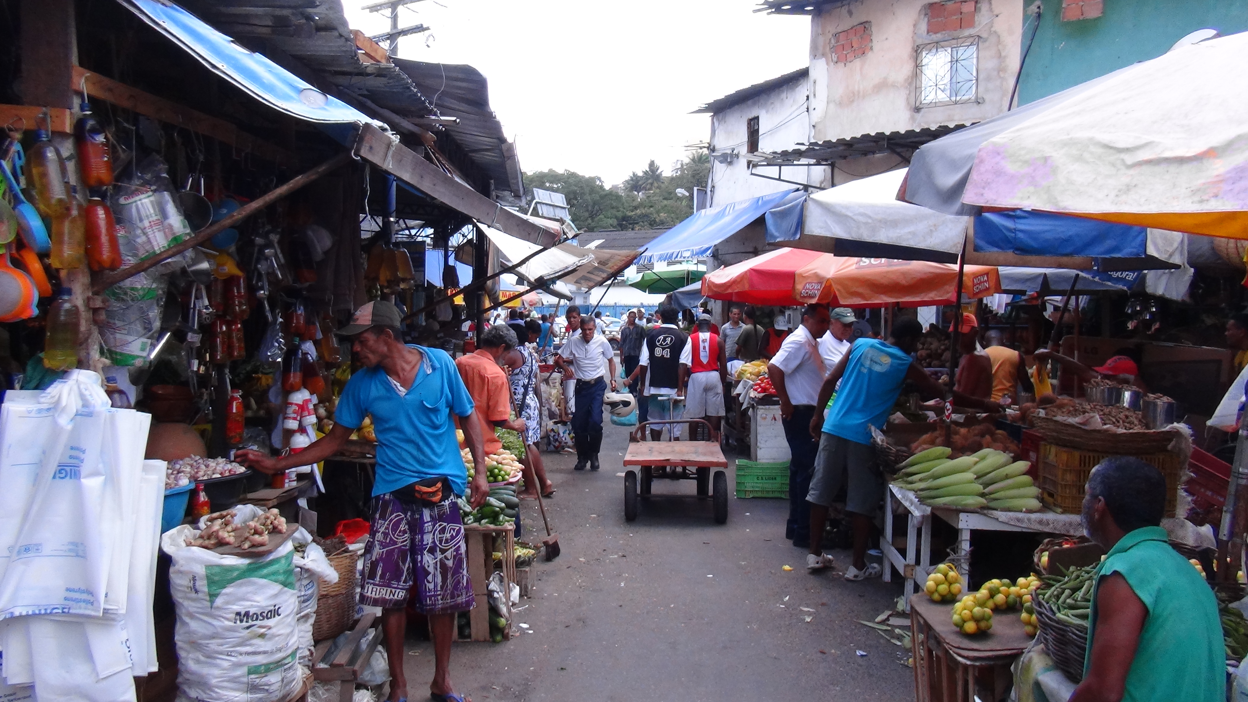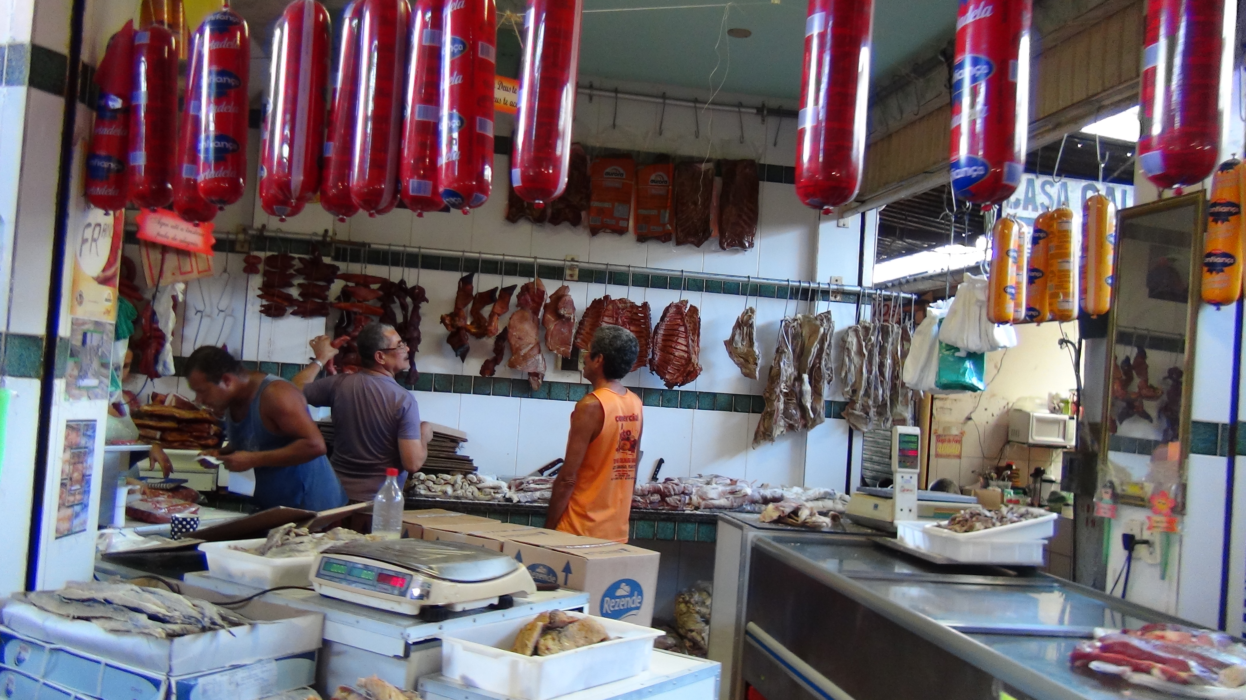 Ce jeudi, sous le signe du retour pour Hervé, nous allons de bon matin au marché central, glaner quelques souvenirs et voir ce qui s’y vend, (et donc ce qui s’y mange), nous imprégner des odeurs (avec 30°C, la crevette séchée s’en donne à cœur joie !!), rencontrer les Brésiliens… Nous sommes à mille lieux de nos étals aseptisés.
