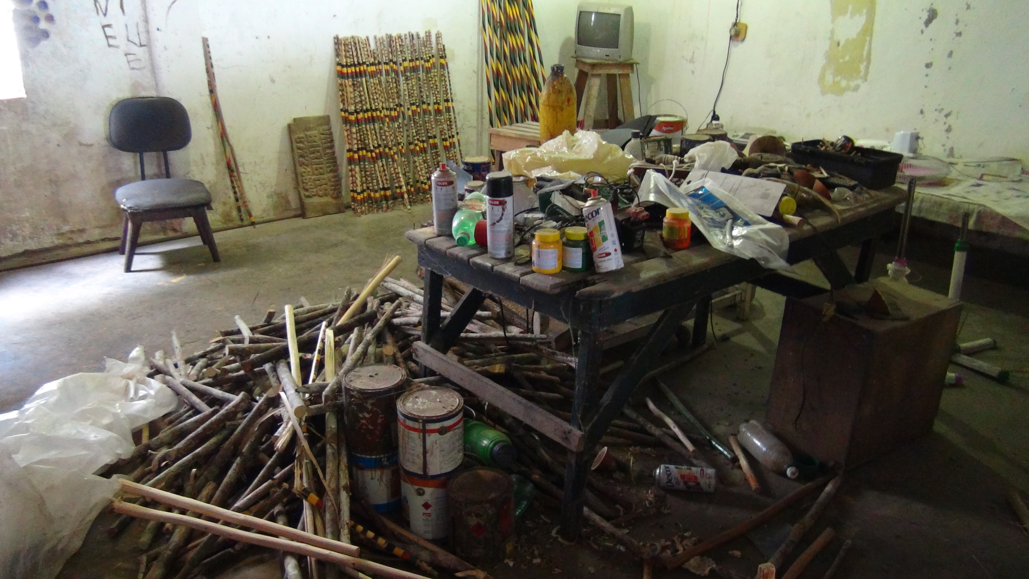 Enfin voici un endroit magique, Vincent nous entraîne chez un fabriquant de Berimbau.