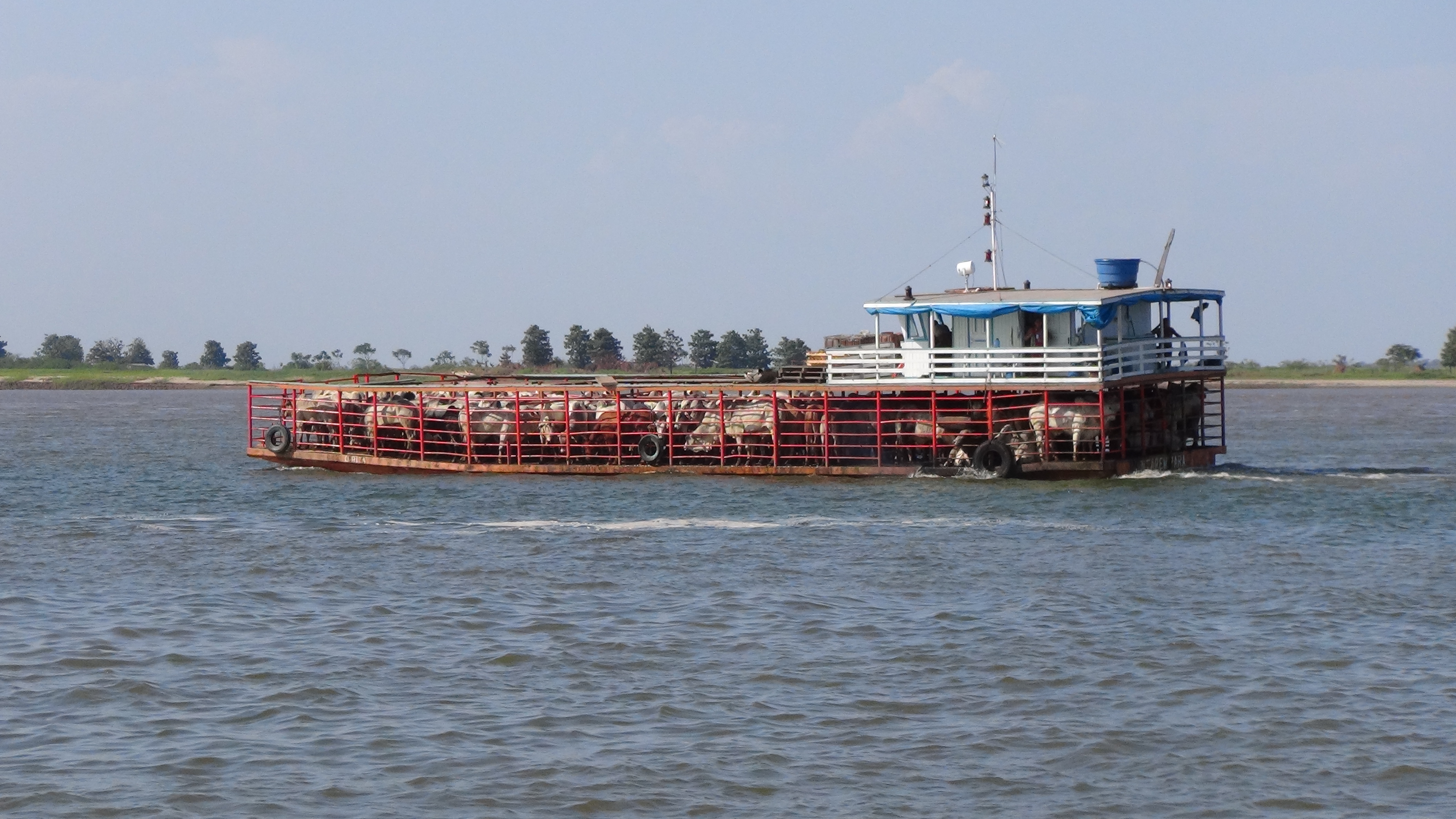Marée basse sur le fleuve, on ramène les bêtes pour brouter.