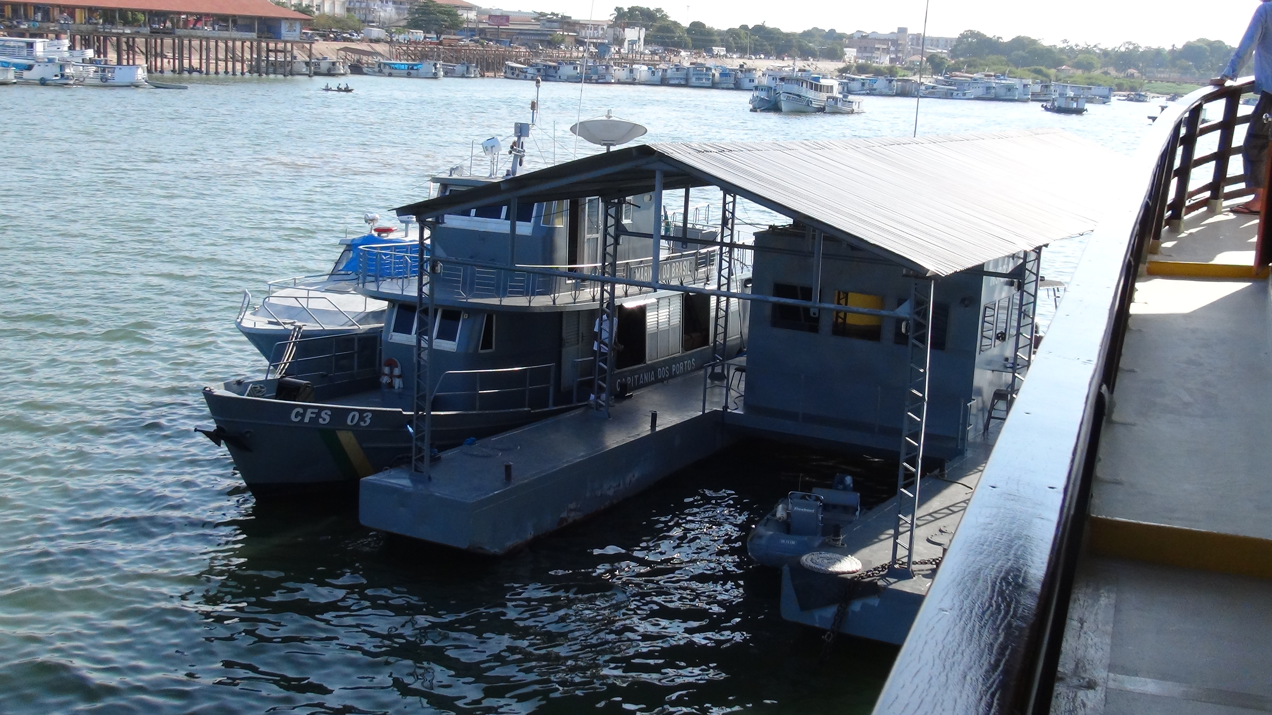 Après avoir largué les amarres et passé le contrôle de la marine brésilienne, barge située dans le cours du fleuve, nous glissons doucement vers la ligne de rencontre des eaux. En aval, sur des kilomètres, les eaux bleues du Tapajos s’enlacent avec les eaux jaunes de l’Amazone sans se mélanger.