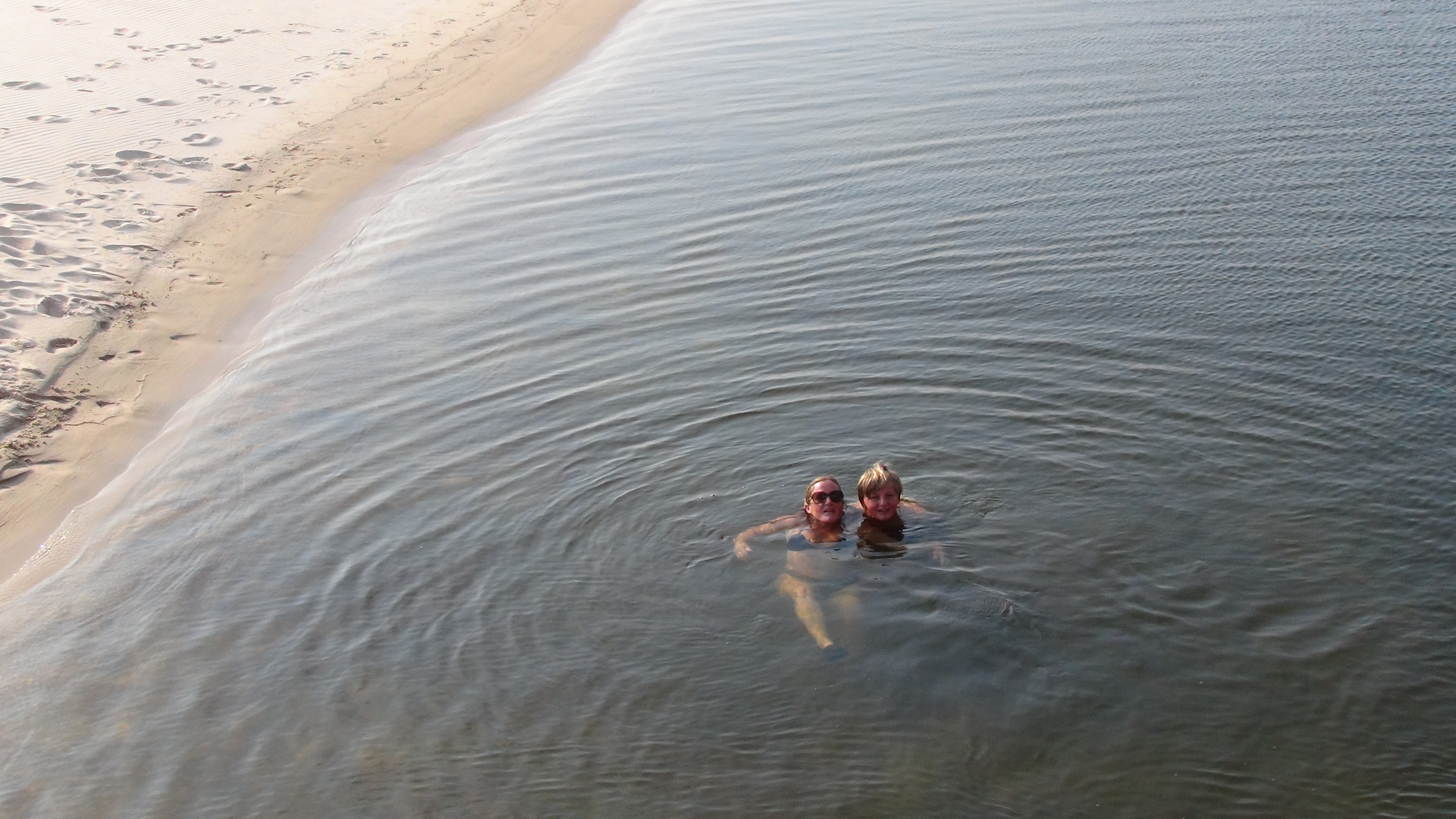 Après le diner, délicieux, nous débarquons et marchons, à peine éclairés par la lune sur cette langue de sable. L’eau du fleuve est chaude, tant et si bien que les raies, venimeuses celle-ci, viennent se reposer dans les endroits de faible profondeur… méfiance…