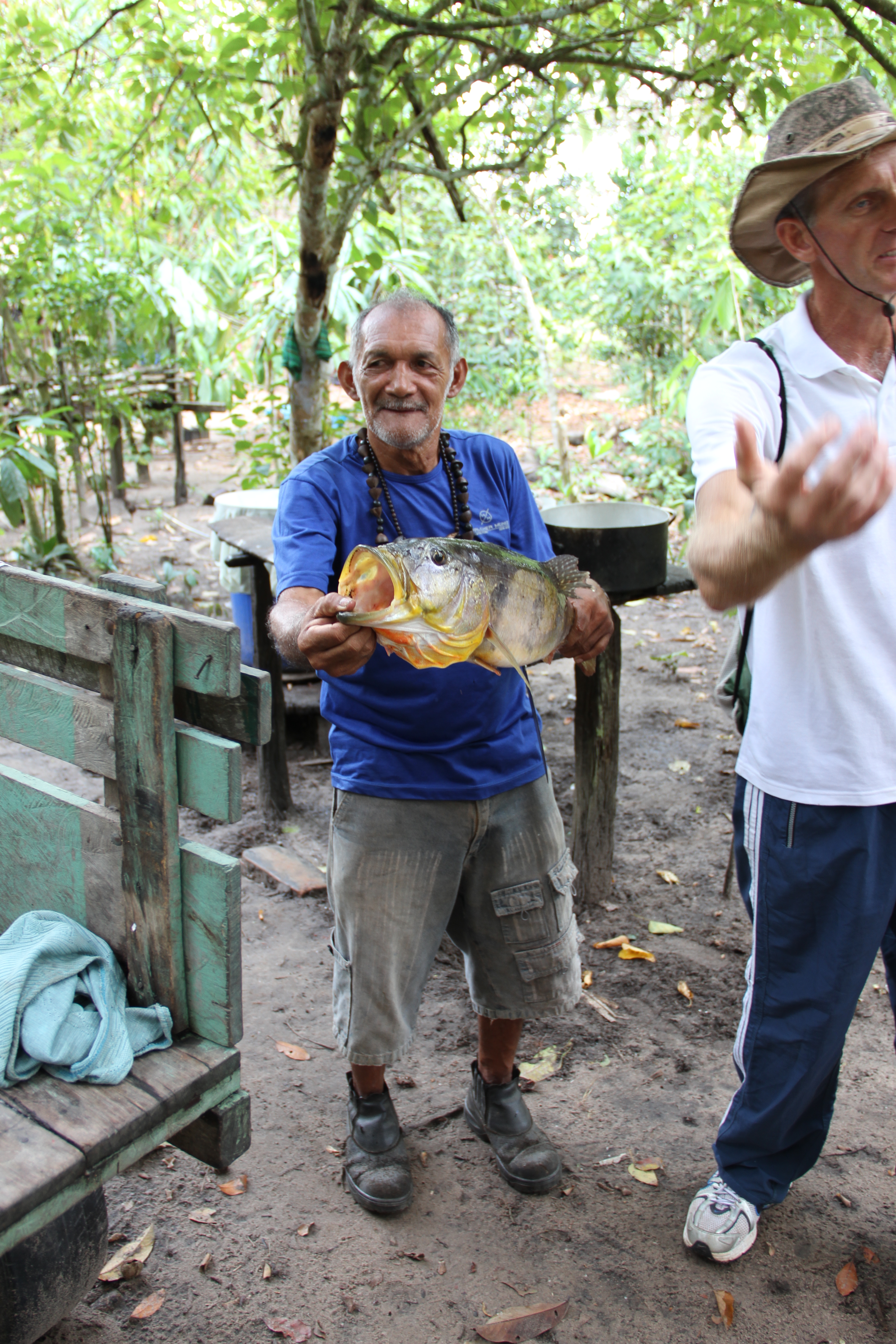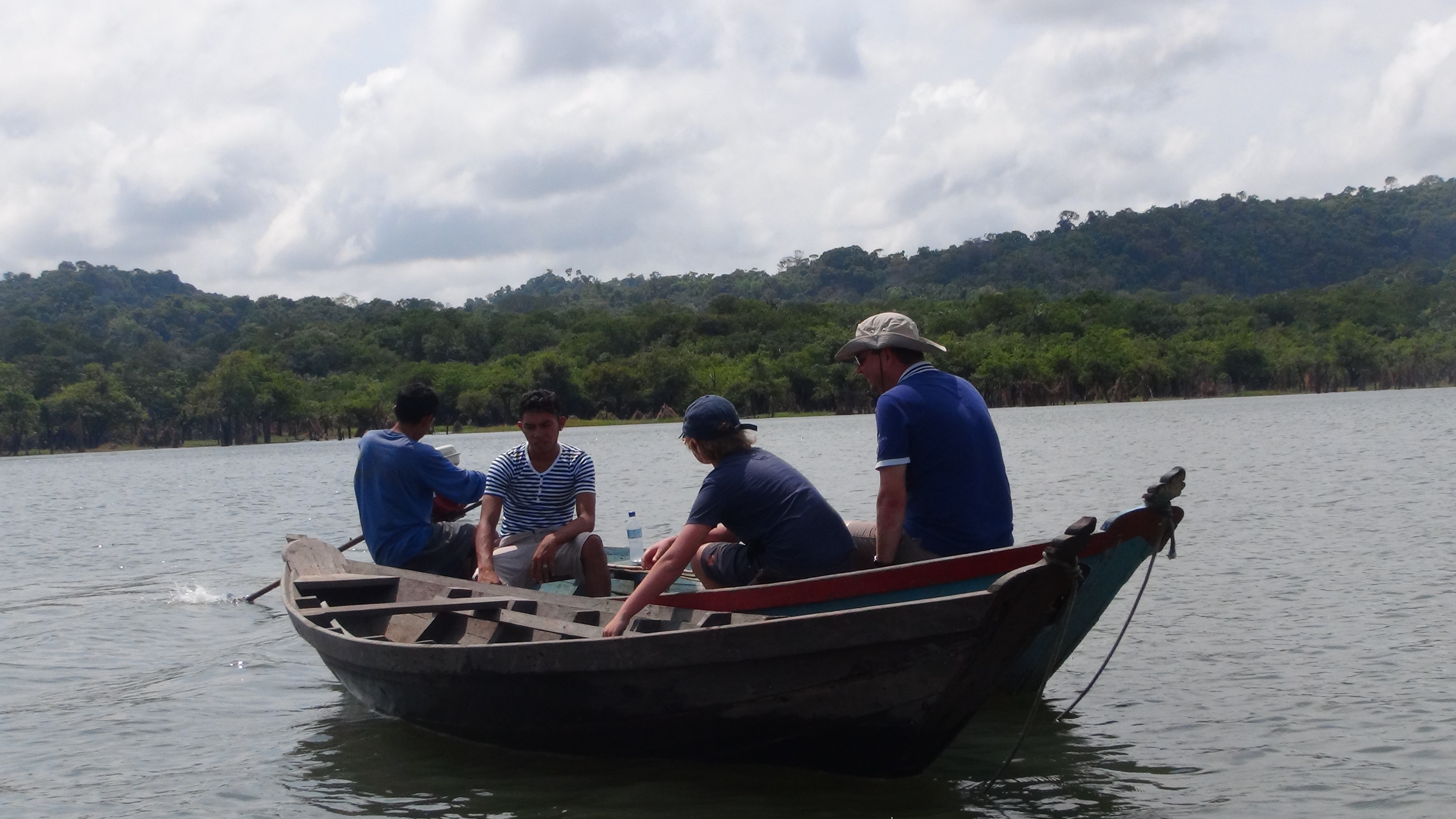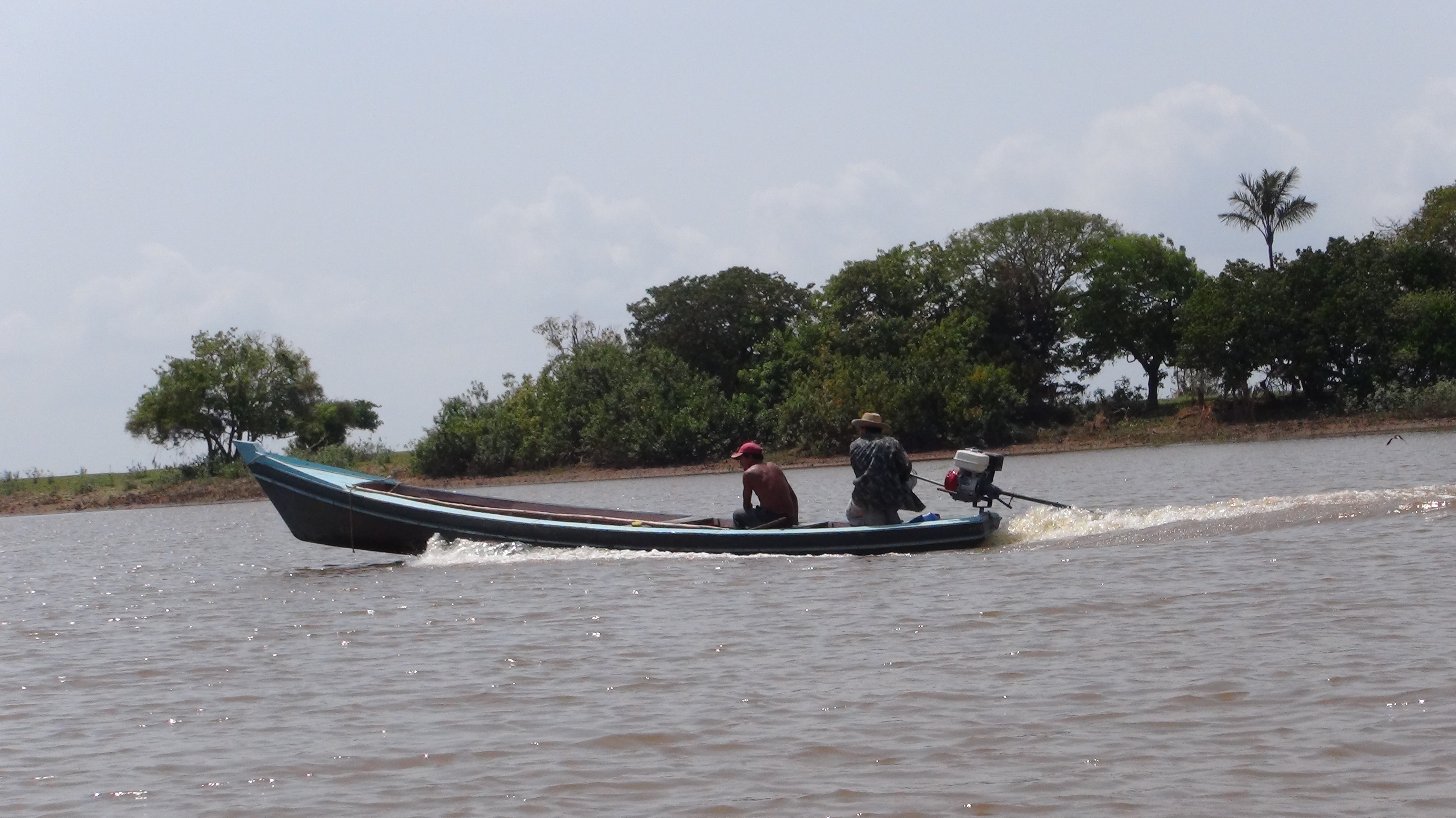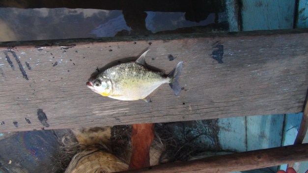 Nous sommes samedi et le programme de cette matinée est varié : rando en forêt primaire, la jungle à l’état pur, observation de la faune grâce à une marche sur les bandes de terre découvertes par l’eau se retirant à cette saison, et pour nous, pêche avec les indiens Munduruku, dans un premier temps dans l’annexe du bateau ensuite dans une pirogue pour Alex et Arthur. Nous passons quelques heures à chercher le piranha, bien sûr, et seule l’équipe Munduruku/les garçons transformera l’essai ! L’orage de la veille aura sans doute troublé le sommeil de poissons qui s’accordent une grasse mat’… (il faut bien que quelqu’un porte le chapeau non ?).