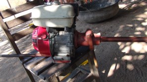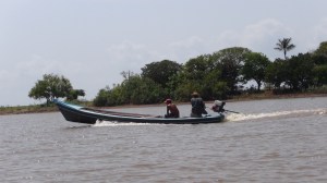 Les moteurs des bateaux sont simples (du type de nos groupe électrogènes), ils sont montés sur une platine avec un axe, une grande tige permet de fixer une hélice que l’on dirait faite à la main. Ce moteur sert aussi à d’autres tâches comme le broyage du manioc.