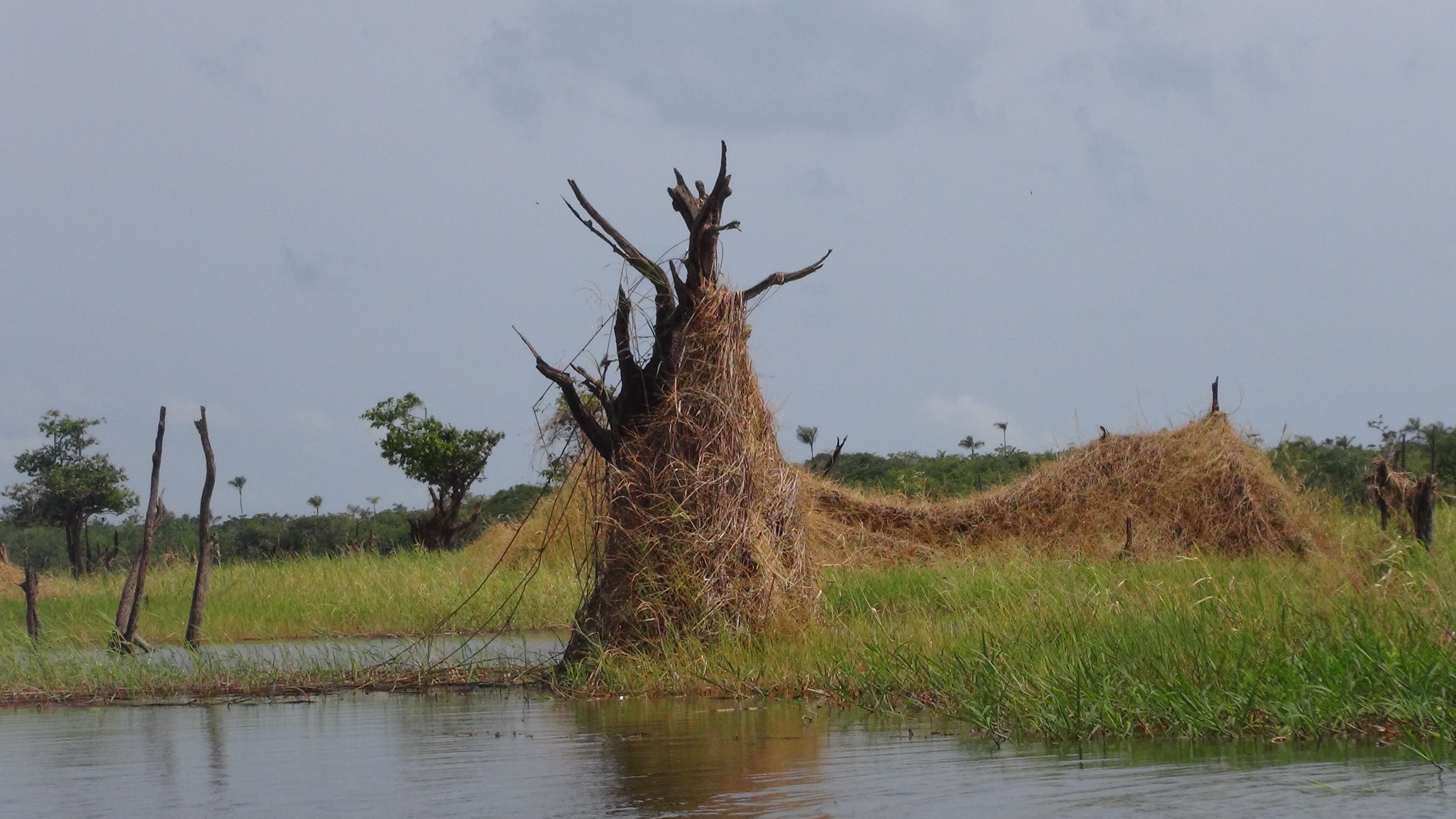 En bateau nous naviguons en direction du Rio Jari d’où s’organise un départ en canot à moteur pour l’observation des oiseaux sur les berges du lac de Bragança. Des oiseaux de toutes les espèces viennent nicher dans les arbres sur les bords du lac. A cette saison, les eaux sont basses, les terres immergées 4 à 5 mois de l’année se couvrent de « prairies » où le bétail est transporté. Durant 6 mois les familles s’installent, une vie s’organise entre école, élevage, église et pêche.