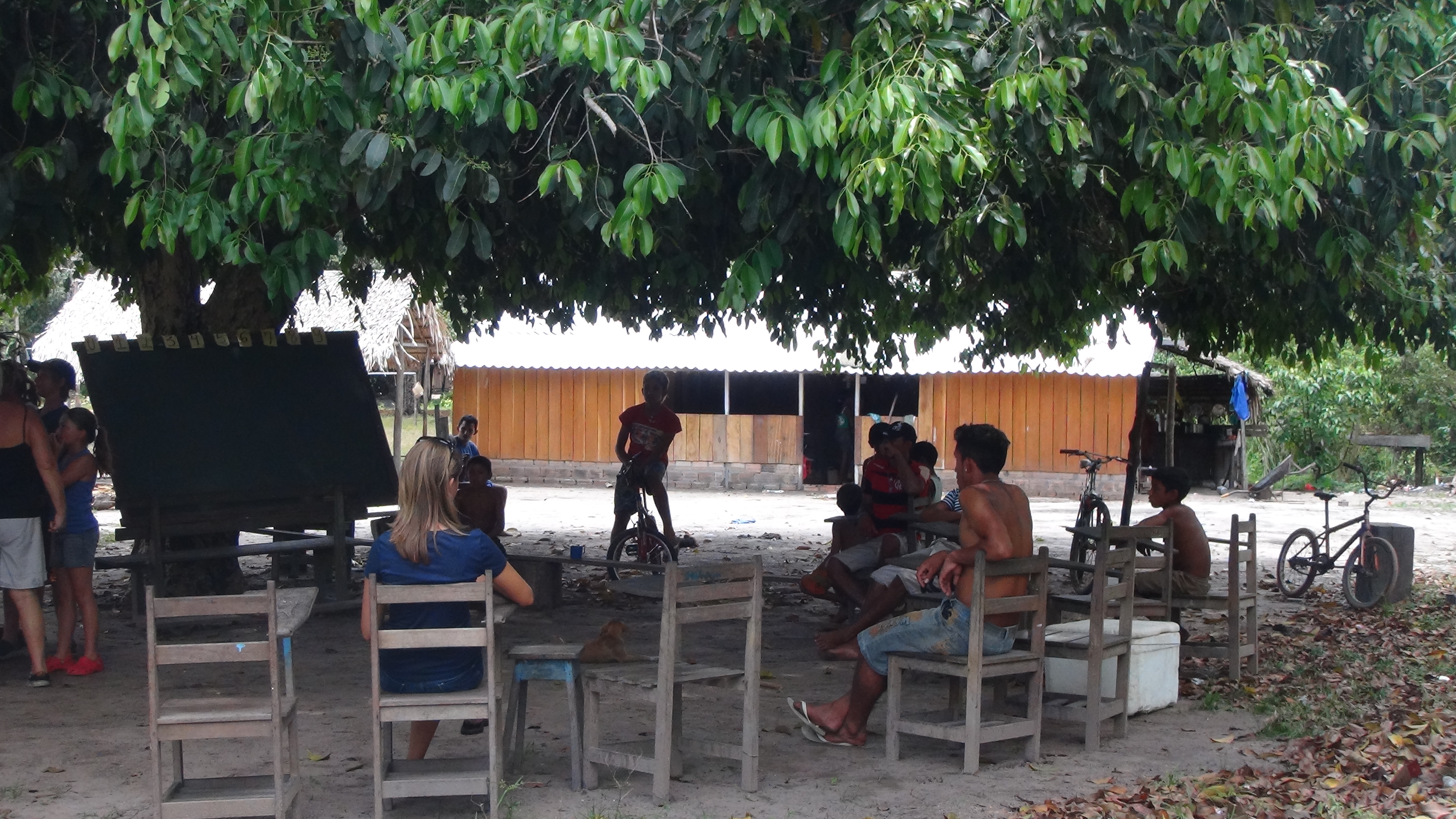 Autre anecdote, 15 jours avant notre passage un cabocle s’est fait attraper la jambe dans ce même endroit par un anaconda de 3 mètres. Il a fallu tuer la bête… Oui c’était un peu dangereux pour les enfants !