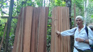 Incroyable : au détour du chemin on découvre une scierie ! En fait les cabocles sont très habiles, lorsqu’un arbre tombe naturellement, ils le débitent sur place à le tronçonneuse et en font des planches. Un travail d’orfèvre.