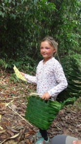 La randonnée nous emmène en forêt secondaire (celle qui a été un temps défrichée pour être mise en culture puis est revenue à l’état sauvage) puis en forêt primaire, protégée, jusqu’à trouver d’immenses arbres vieux de 600 à plus de 1000 ans. Nous revenons fourbus après près de 6 heures de marche et 17 kilomètres dans la chaleur tropicale… Si nous avons pu observer des oiseaux, rois de la canopée, des papillons bleus, des chenilles et profiter des talents de tressage de nos guides indiens, impossible de surprendre les singes agiles et les paresseux !