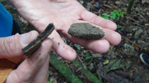 Un de nos guide trouve dans la souche d’un arbre tombé de la terre cuite. La preuve de les indiens habitent ici depuis très très longtemps !