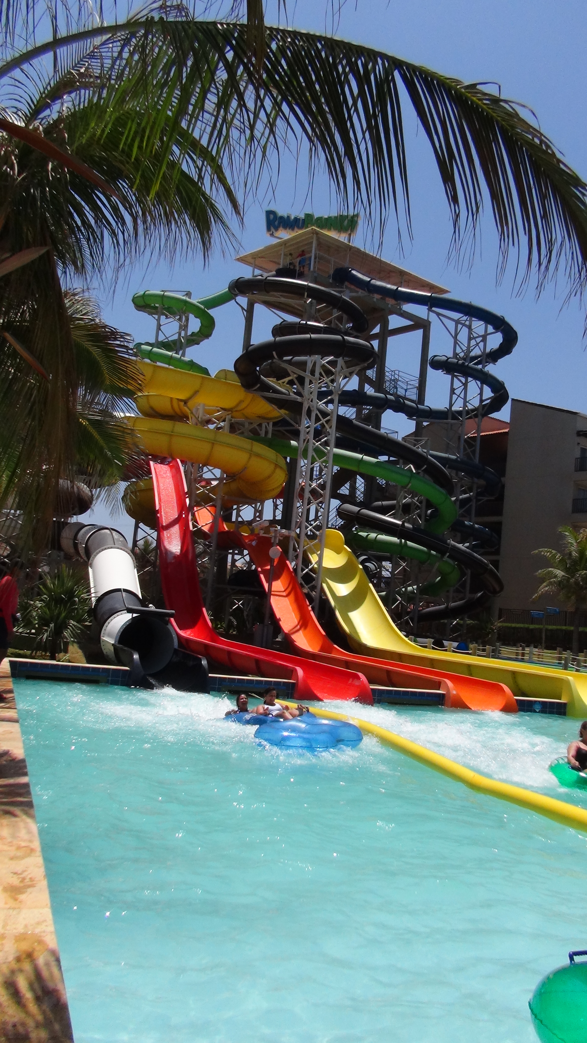 pour arriver à « aldeia » ou village des indiens Cumaruara. Une fois le bateau arrimé, le bain s’impose, l’eau est verte et claire, le sable à peine jaune. Arthur et Alex révisent leurs gammes de skieurs dans la baie.